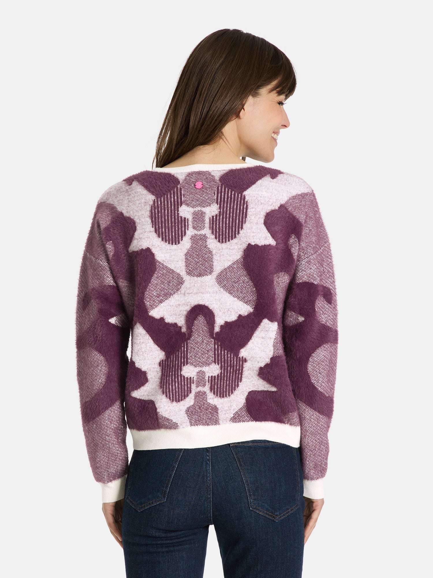 Mit diesem Pullover wird jeder Tag ein bisschen kreativer! Das ausgefallene Jacquard-Muster zieht alle Blicke auf sich und verleiht Deinem Look eine moderne, fast künstlerische Note. Gleichzeitig fühlt sich das Material angenehm weich an und schenkt Dir ein wohliges Tragegefühl – perfekt für gemütliche Stunden oder stilvolle Auftritte. Der klassische Rundhalsausschnitt rundet das Design wunderbar ab und macht dieses LIEBLINGSSTÜCK zu einem echten Mode-Statement.