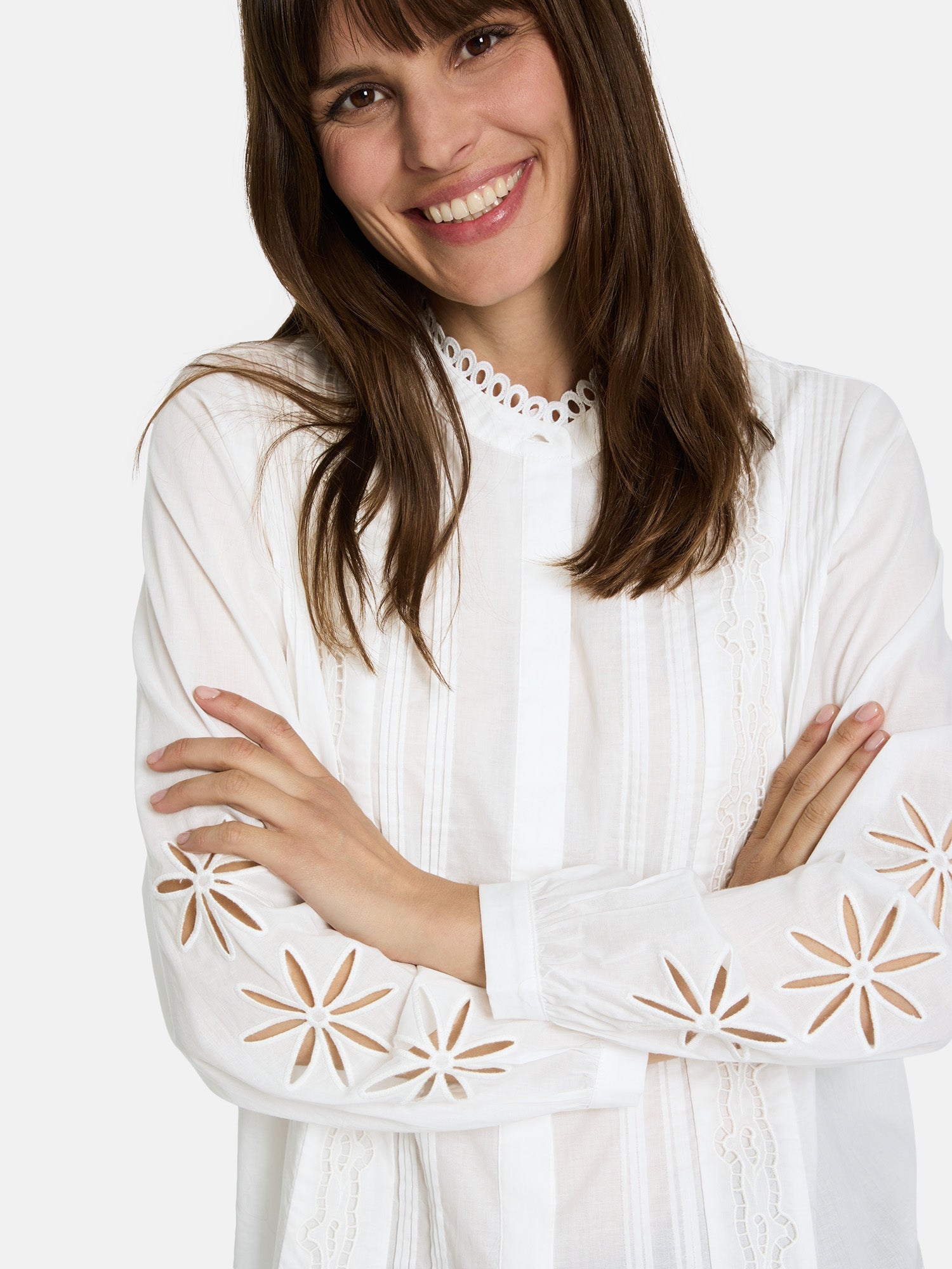 Luftig und verspielt – mit dieser LIEBLINGSSTÜCK-Bluse bringst Du Leichtigkeit in Deinen Tag. Die edle Lochspitze vorn und an den Ärmeln wirkt romantisch und feminin zugleich.