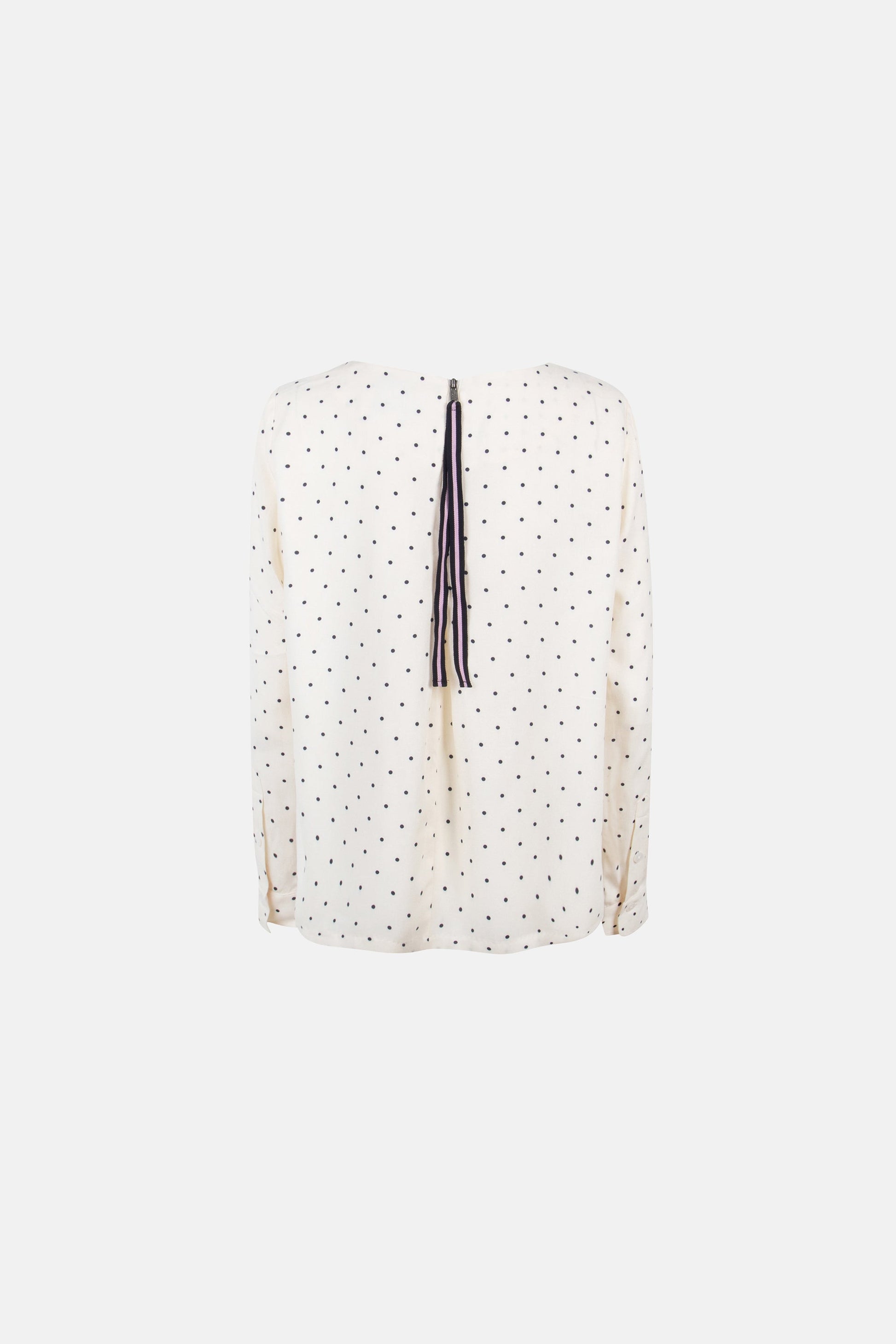 Ein Hauch von Verspieltheit trifft auf modernen Chic: Diese bezaubernde Bluse mit zarten Pünktchen-Muster wird schnell zu Deinem neuen LIEBLINGSSTÜCK. Der Clou? Der elegante Reißverschluss auf der Rückseite, raffiniert verziert mit einem Kontrastband, das dem Design eine besondere Note verleiht. Kombiniert mit einem Pullunder - ein wahres Alltagswunder!