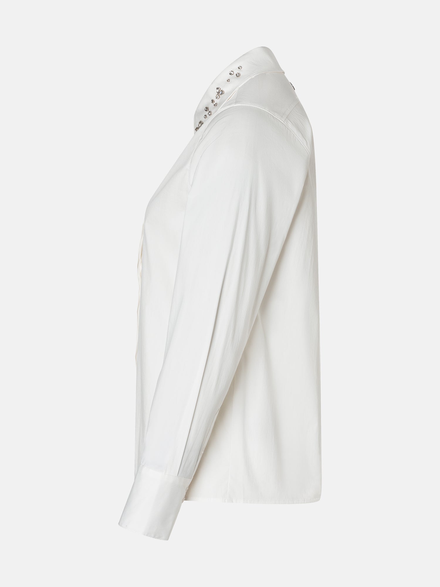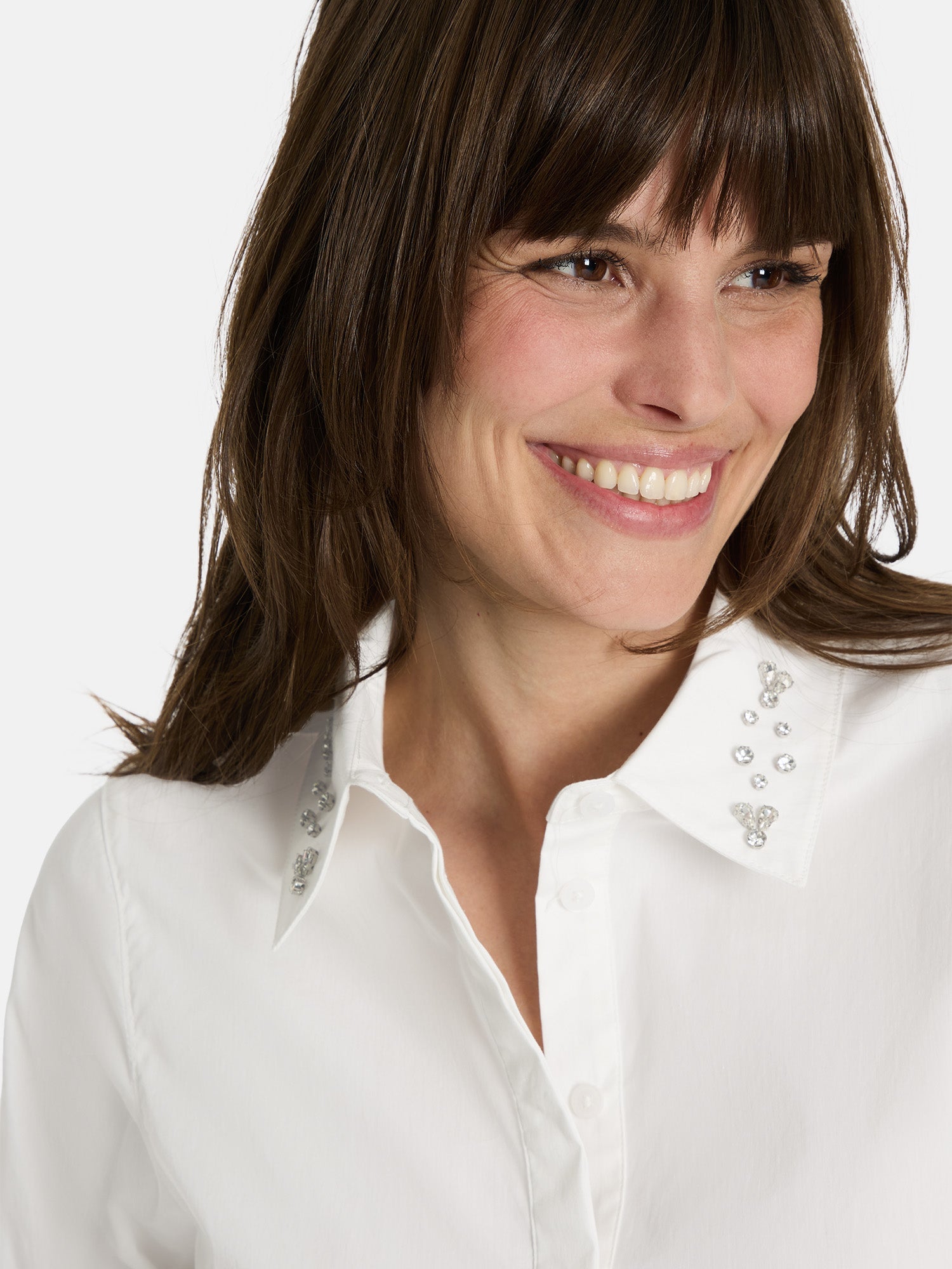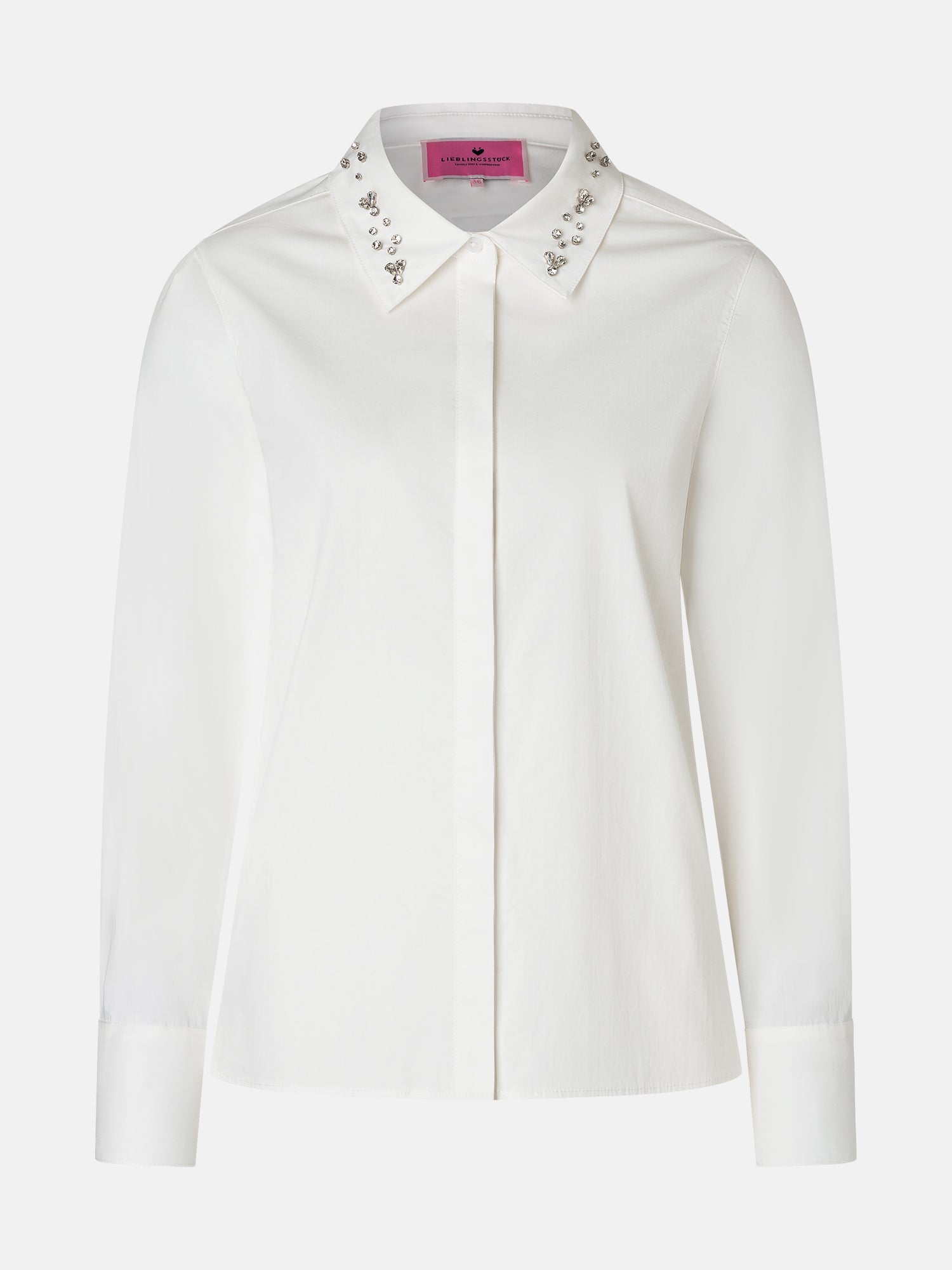 Diese Bluse von LIEBLINGSSTÜCK vereint klassische Form mit dezentem Glamour. Der durchgehende Knopfverschluss und der Umliegekragen geben ihr eine zeitlose Ausstrahlung. Glitzerelemente am Kragen setzen einen funkelnden Akzent, der das Modell besonders macht. Der bequeme Schnitt sorgt dafür, dass Du Dich den ganzen Tag wohlfühlst. Perfekt geeignet für festliche Anlässe, das Büro oder einfach, um Deinem Alltag ein wenig Glanz zu verleihen.