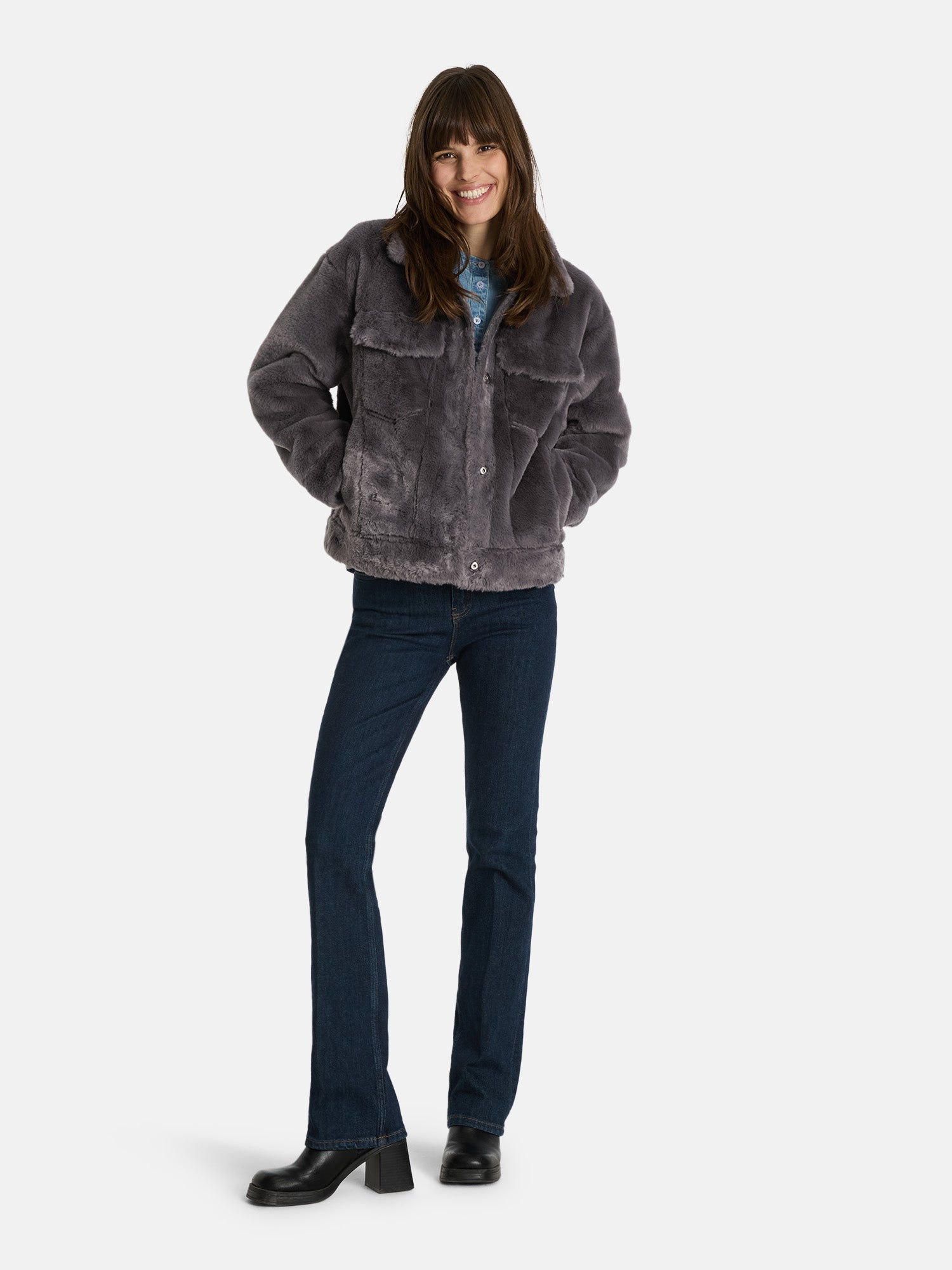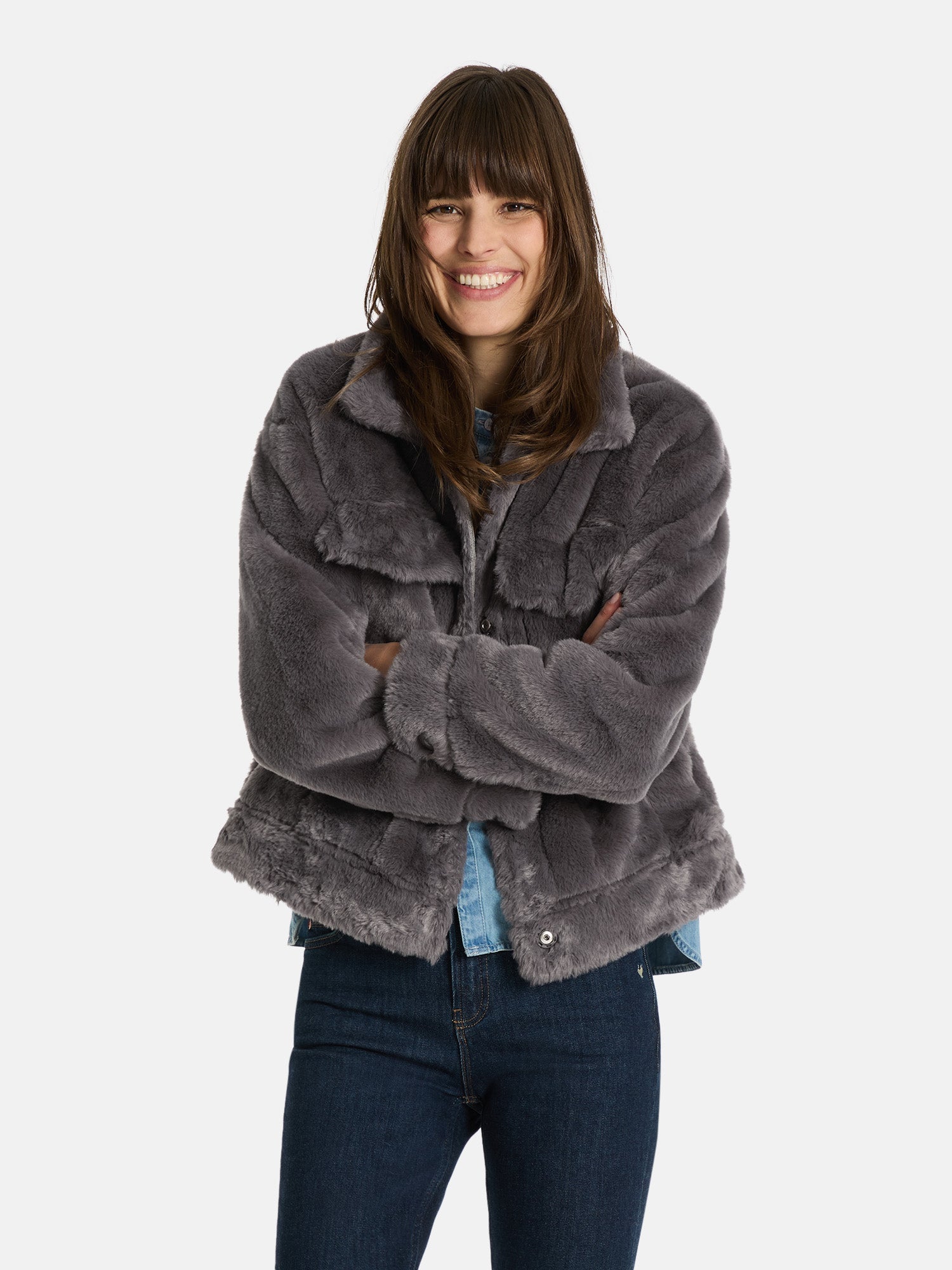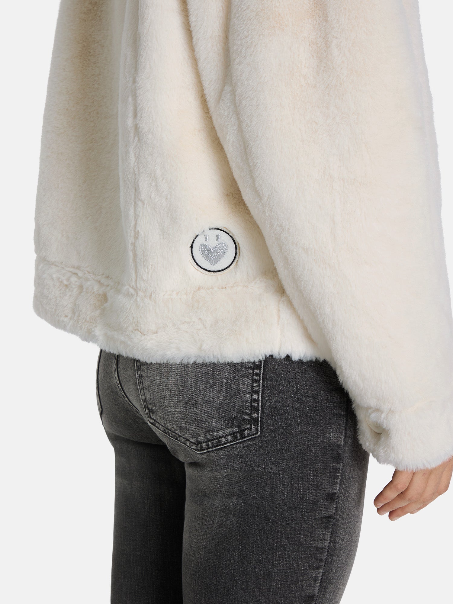 Diese samtig-weiche Fake Fur Jacke ist Dein kuscheliger Begleiter für kalte Tage! Mit ihrem lässigen Hemdblusenkragen, dekorativen Taschenklappen und dem Lieblingsstück-Stick am Rücken wird sie zum coolen Hingucker. Ob für den City-Bummel oder das Dinner-Date – mit dieser Jacke bist DU immer stylisch gewärmt.