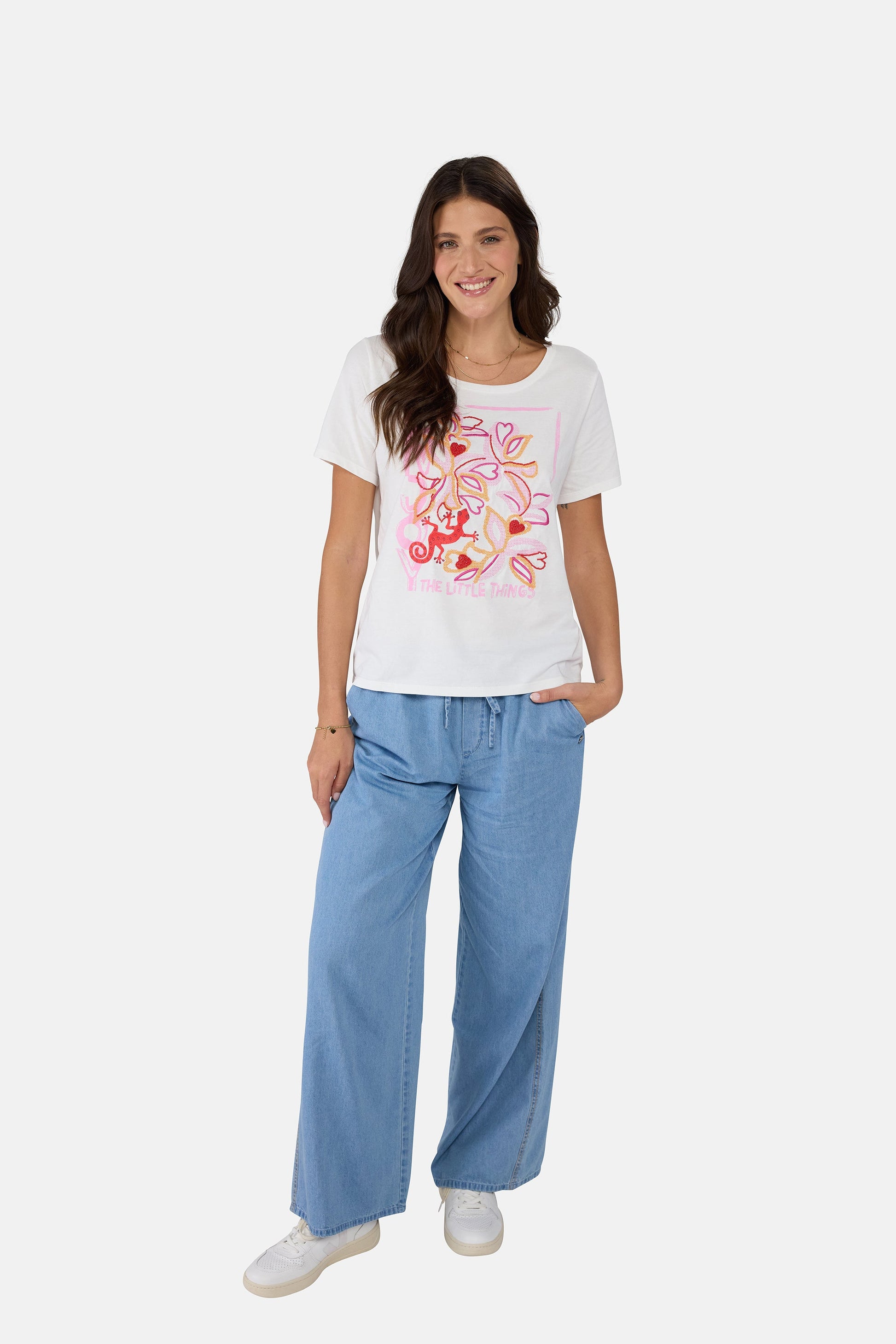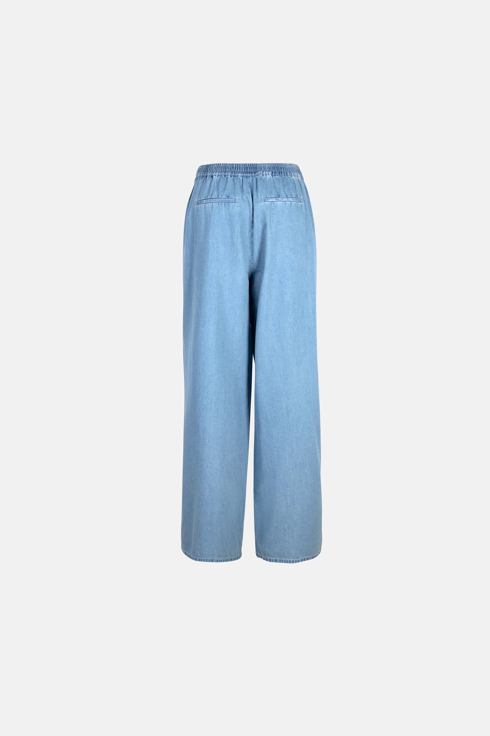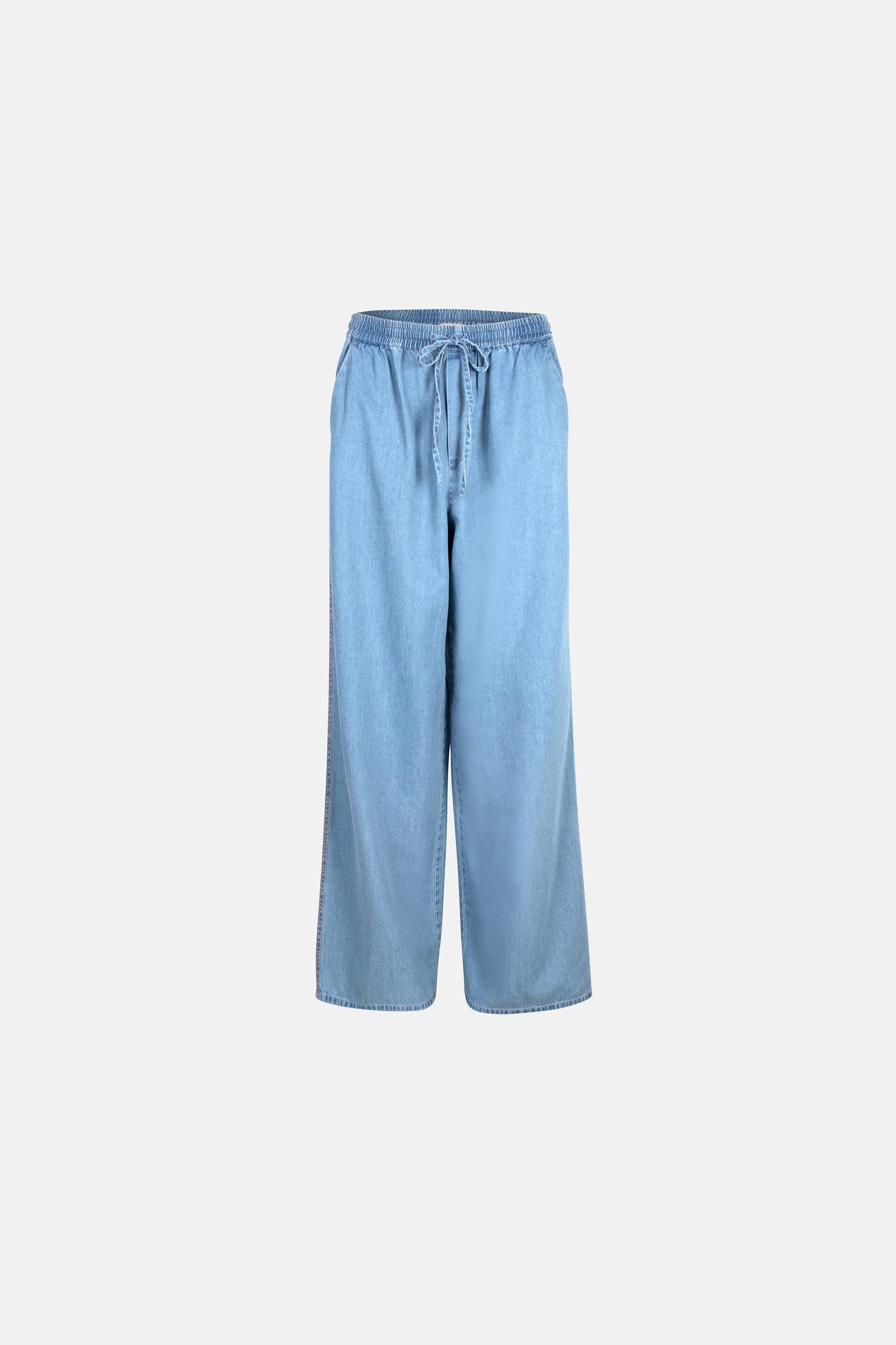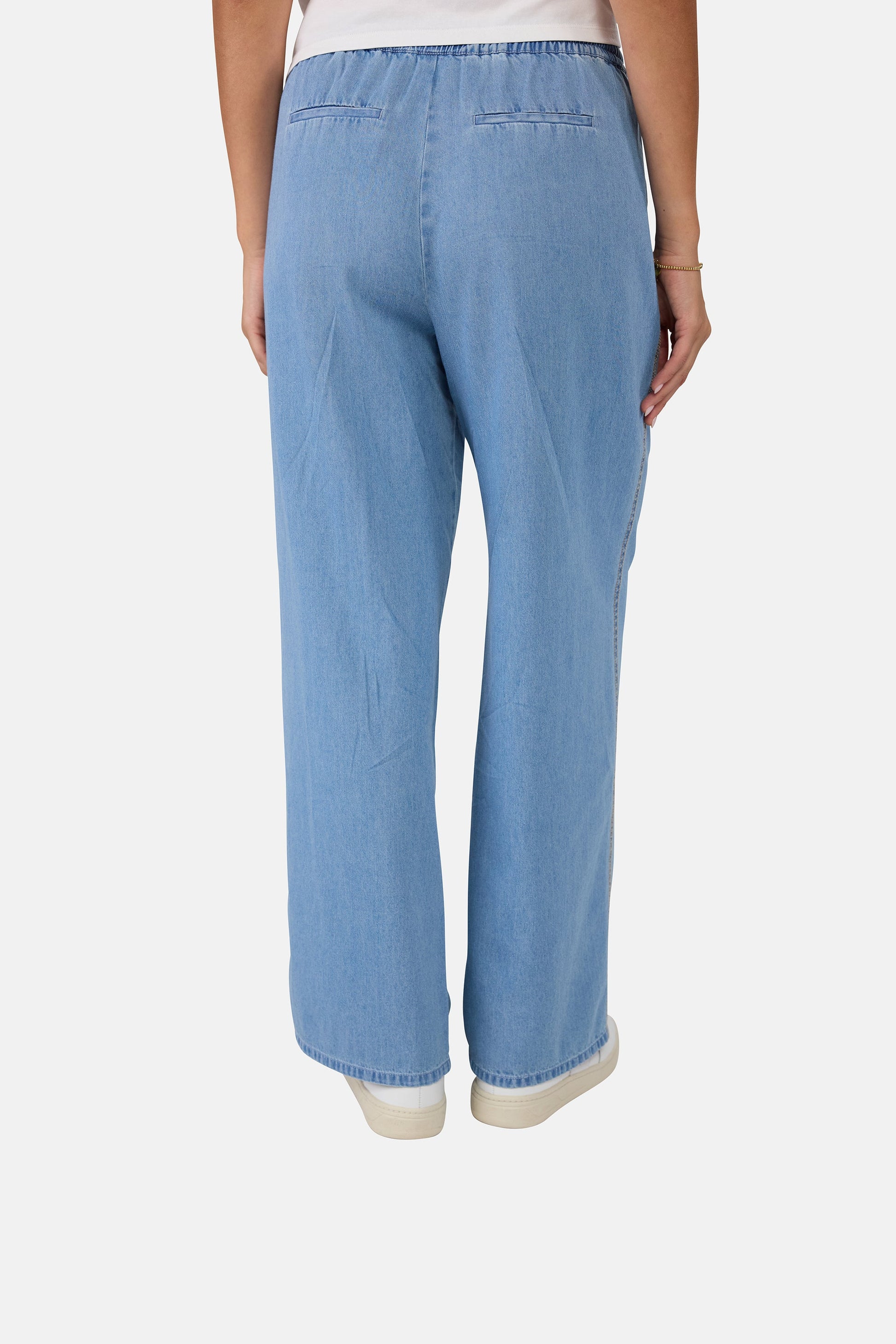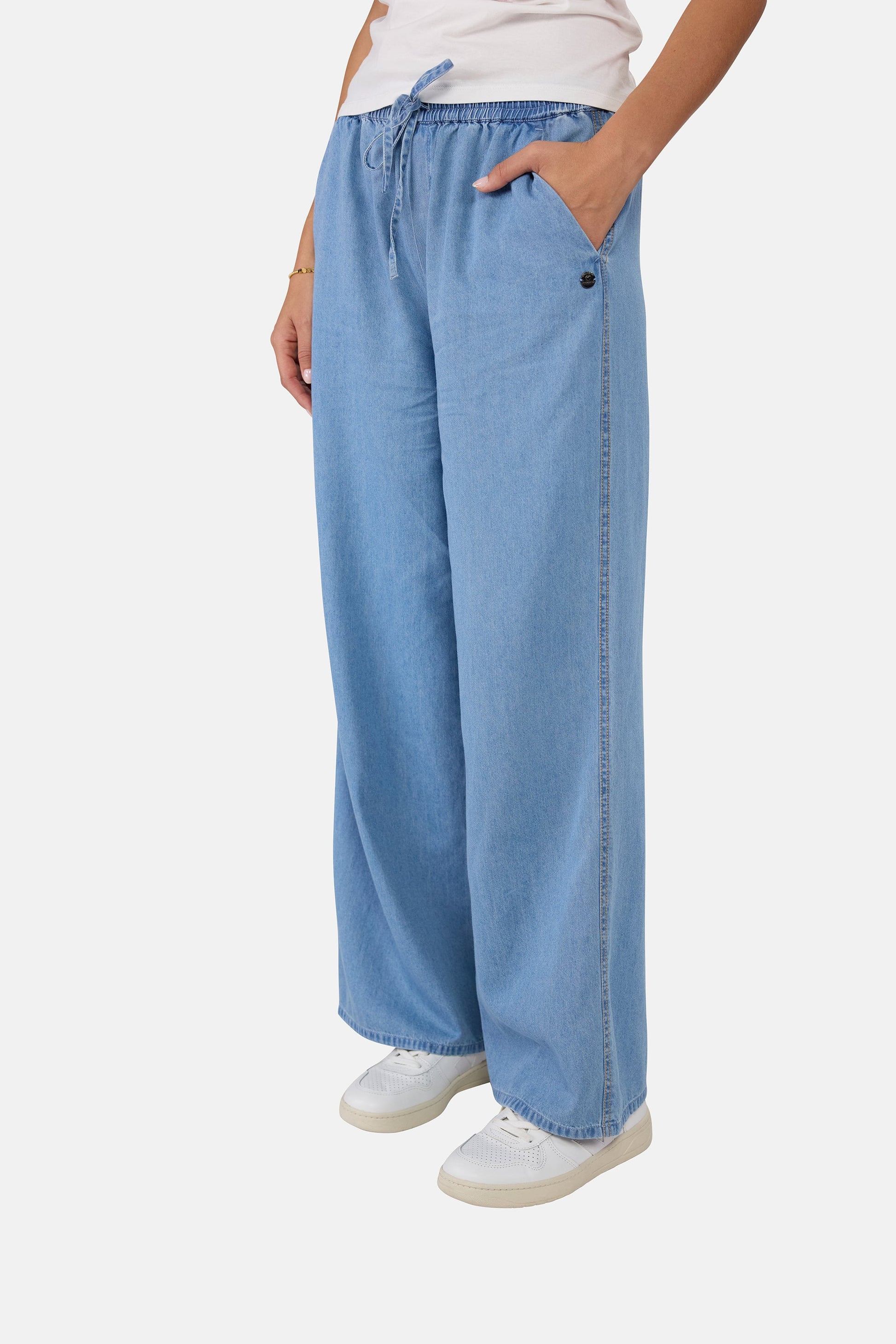 Die Tencel-Hose mit elastischem Bund und Bindeband ist ein besonders komfortables und zugleich stilvolles Kleidungsstück. Das Tencel-Material, auch bekannt als Lyocell, zeichnet sich durch seine weiche, glatte Textur und seine atmungsaktiven, feuchtigkeitsregulierenden Eigenschaften aus. Es sorgt für ein angenehmes Tragegefühl auf der Haut und bietet gleichzeitig eine umweltfreundliche Alternative zu anderen Stoffen, da Tencel aus nachhaltig bewirtschafteten Holzquellen hergestellt wird. Das weite Bein sorgt für einen modernen und zugleich eleganten Look.