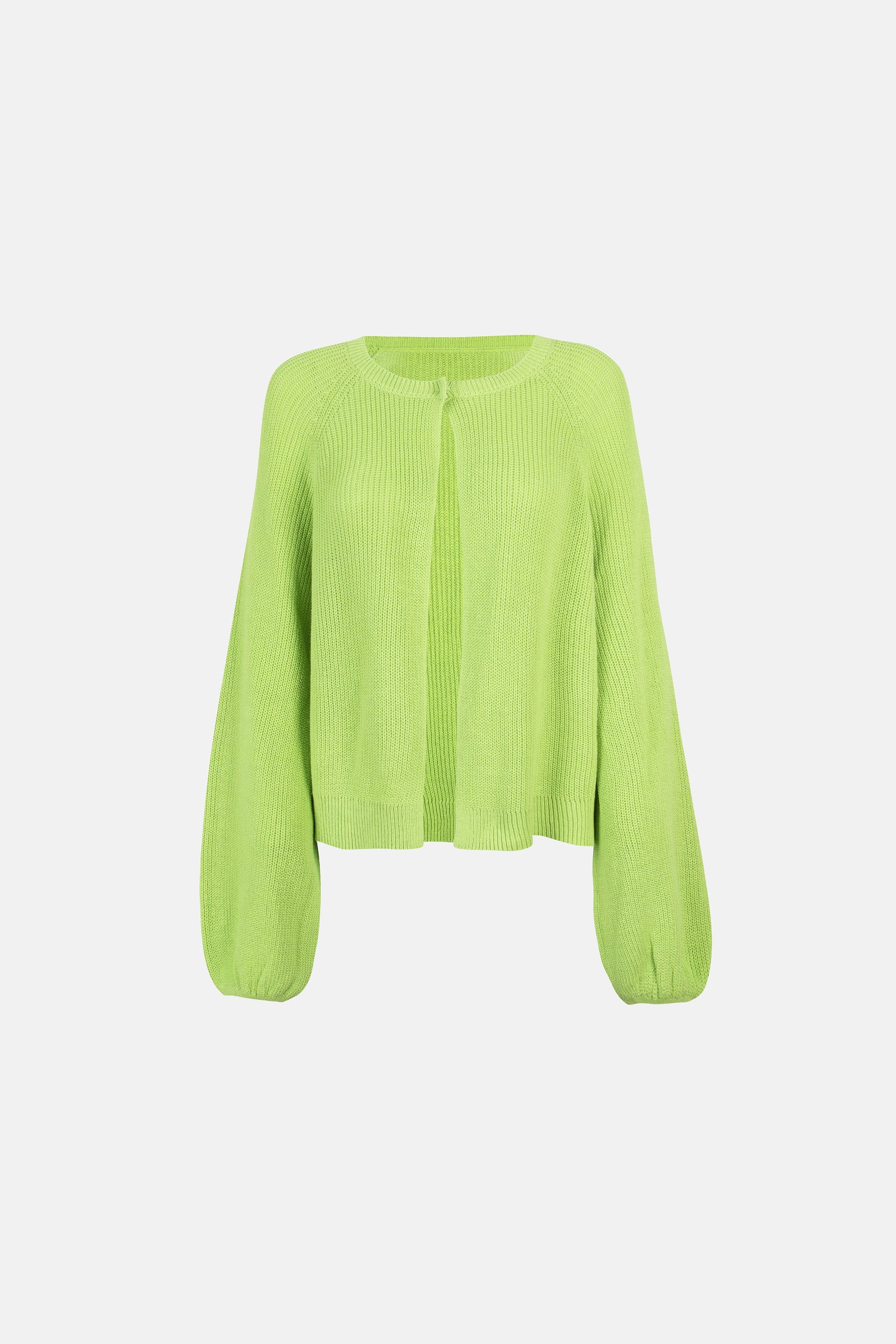 Gefertigt aus einer luftigen Baumwoll-Leinen-Mischung ist diese Strickjacke wie gemacht für laue Sommerabende. Dabei begeistert sie Dich nicht nur mit einem tollen Tragegefühl, sondern setzt Dich mit ihren Puffärmlen im Raglanschnitt auch noch perfekt in Szene.