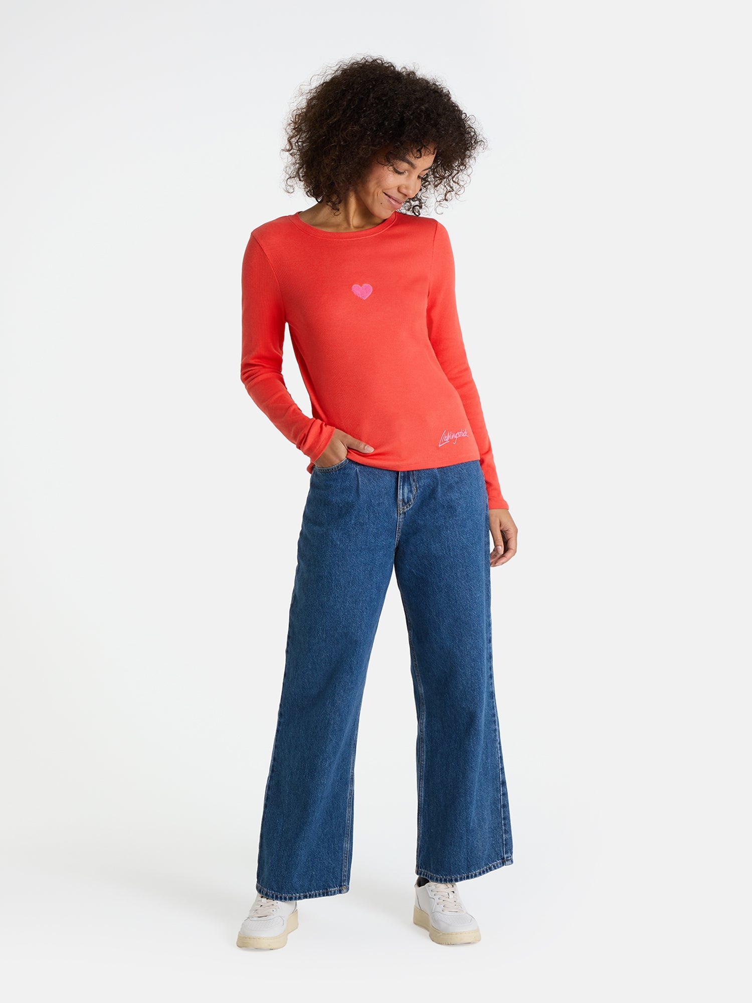 Dieses Longsleeve von LIEBLINGSSTÜCK ist ein echtes Wohlfühl-Basic mit liebevollem Detail. Der klassische Rundhalsausschnitt macht es zum unkomplizierten Begleiter für jeden Tag. Auf der Brust setzt das kleine Herz einen verspielten Akzent, der Deinen Look sofort aufwertet. Durch den femininen, schmalen Schnitt lässt sich das Shirt wunderbar kombinieren – ob lässig zur Jeans oder stilvoll unter einem Blazer. Die hochwertige Verarbeitung sorgt dabei für ein angenehmes Tragegefühl. Ein Lieblingsteil, das Einfachheit und Charme perfekt verbindet.