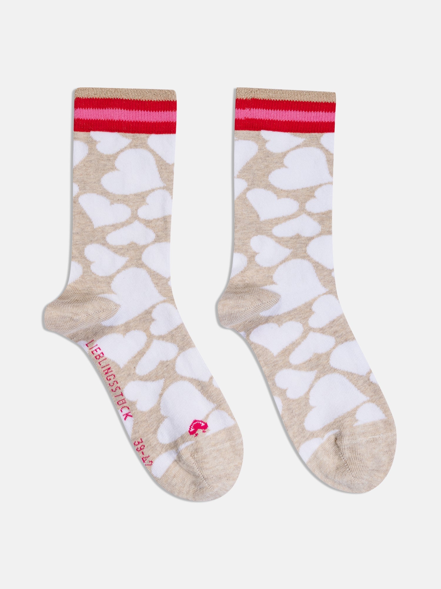 Diese Socken setzen ein modisches Statement voller Liebe. Das große Herzmuster macht sie zu einem echten Hingucker und bringt Freude in Deinen Alltag. Dank des weichen Materials tragen sie sich besonders angenehm und schenken Dir Komfort von früh bis spät. Ein LIEBLINGSSTÜCK, das nicht nur gemütlich, sondern auch voller Lebensfreude ist.