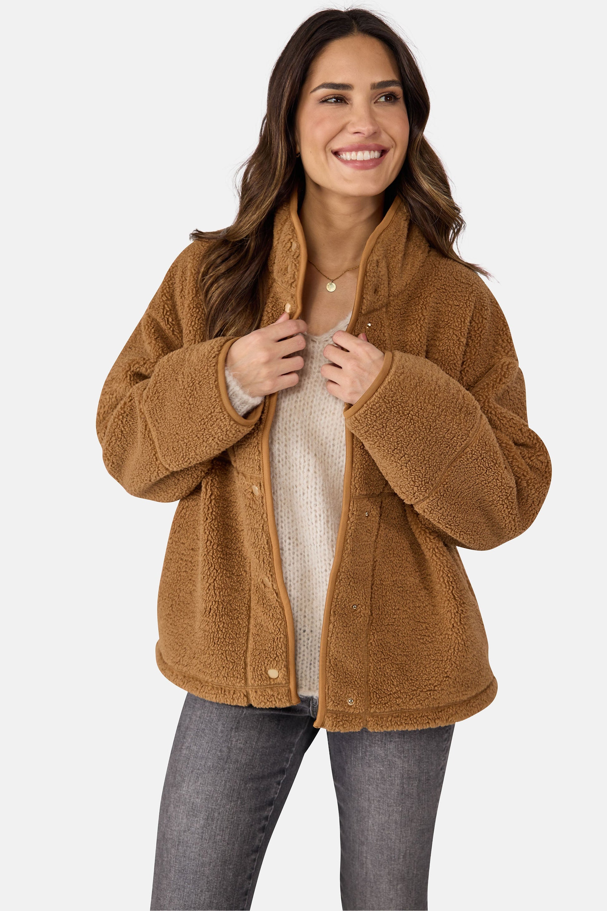 Kuschelig, warm und absolut im Trend – dieser Teddyfellmantel mit Stehkragen ist ein Must-Have für die kalte Jahreszeit. Das weiche, flauschige Teddyfell umhüllt Dich wie eine sanfte Umarmung und sorgt für höchsten Tragekomfort, während der Stehkragen zusätzlichen Schutz vor Wind und Kälte bietet.