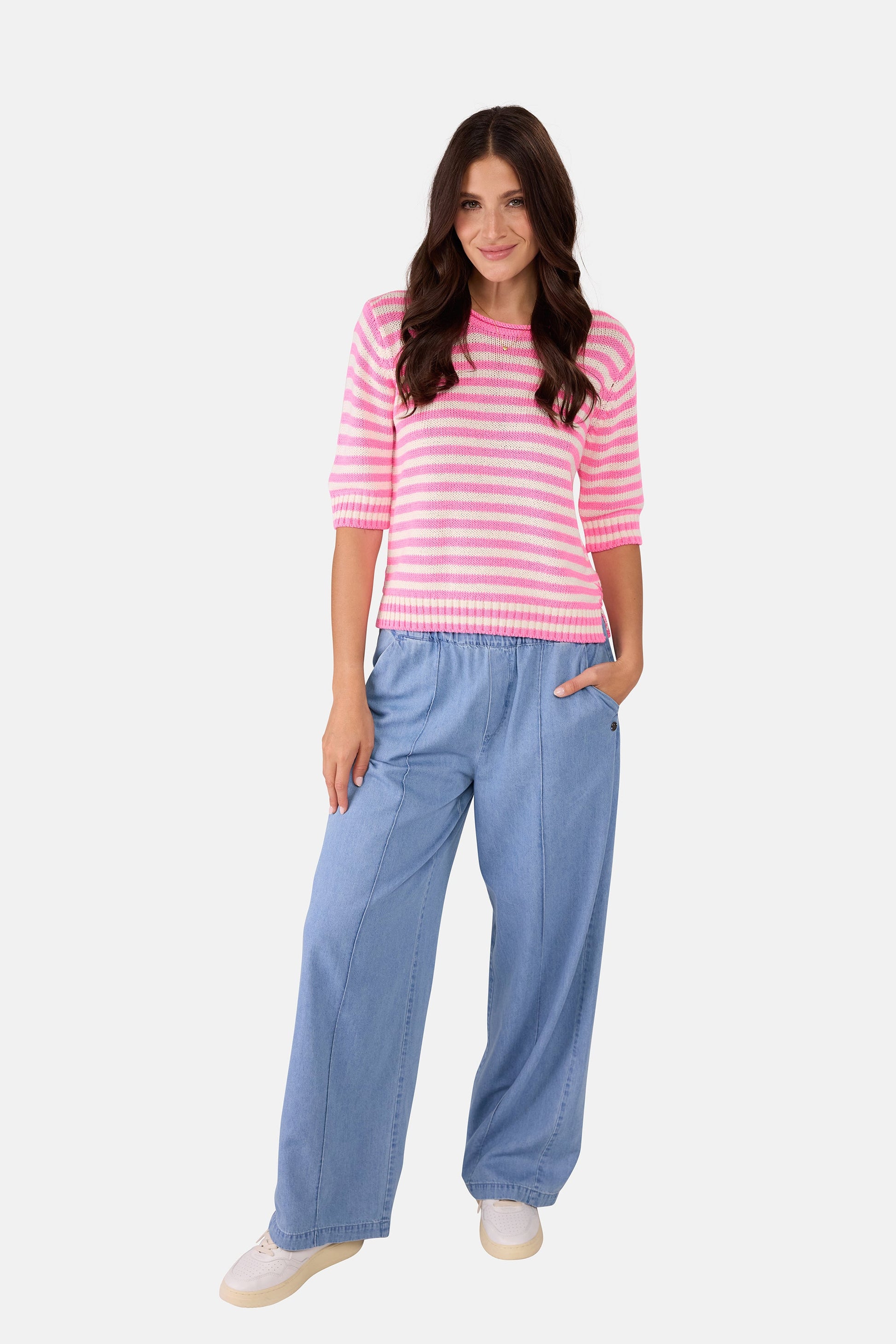 Ob süße Intarsie oder klassische Streifen – dieser Rundhals-Pullover bringt Abwechslung in Deinen Kleiderschrank! Der bequeme Schnitt und das weiche Material sorgen für ein angenehmes Tragegefühl, während die liebevollen Details Deinen Look einzigartig machen. Perfekt für entspannte Tage und sommerliche Vibes – ein echtes LIEBLINGSSTÜCK für Dich!