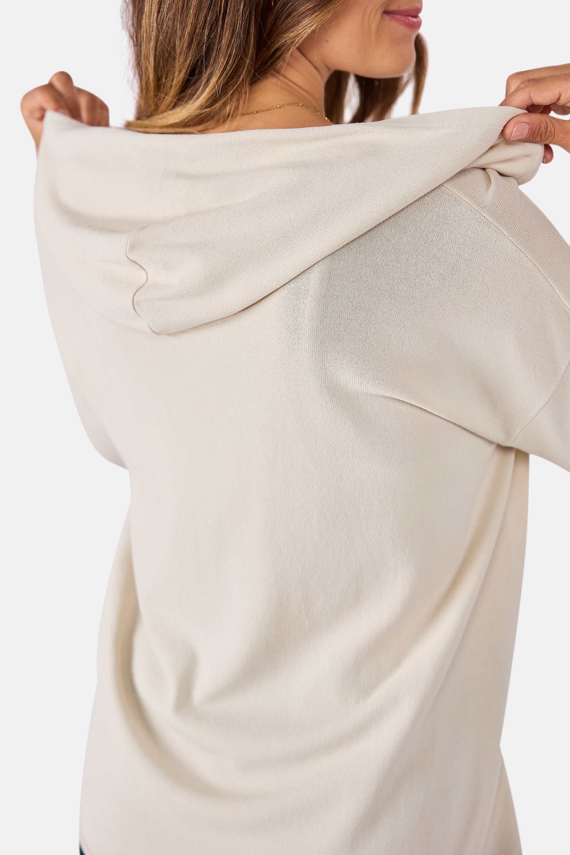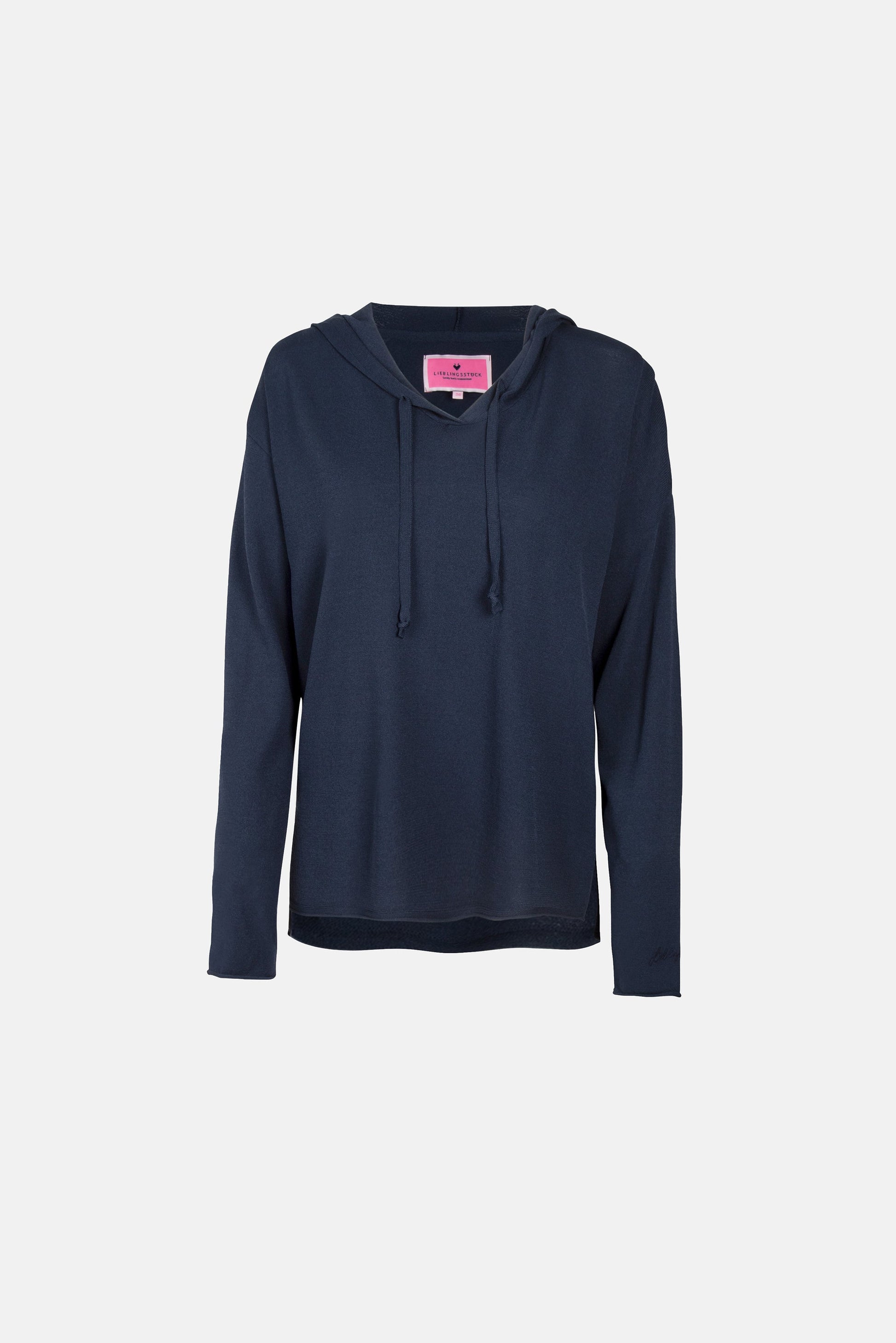 Softer Strick, der dir an lauen Sommertagen Wärme spendet: das ist der Pullover Lenia aus super angenehmer Viskose Mischung. Dank Kapuze, Oversize Schnitt und Bindebändern erlangt der Hoodie einen lässig-sportiven Look.
