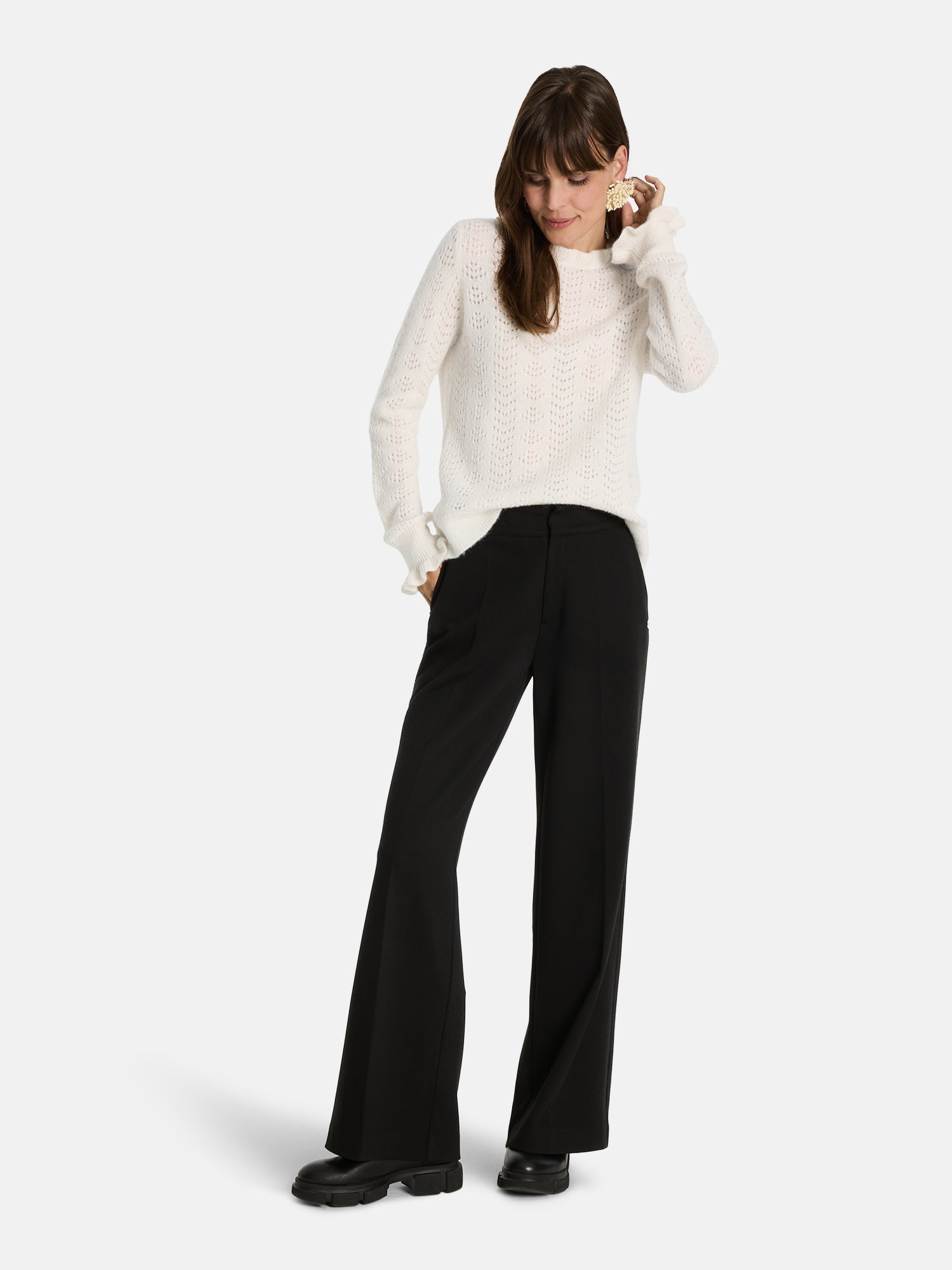 Dieser LIEBLINGSSTÜCK Pullover bezaubert Dich mit femininen Rüschen und einem filigranen Ajourmuster. Für besondere Momente mit Stilgefühl