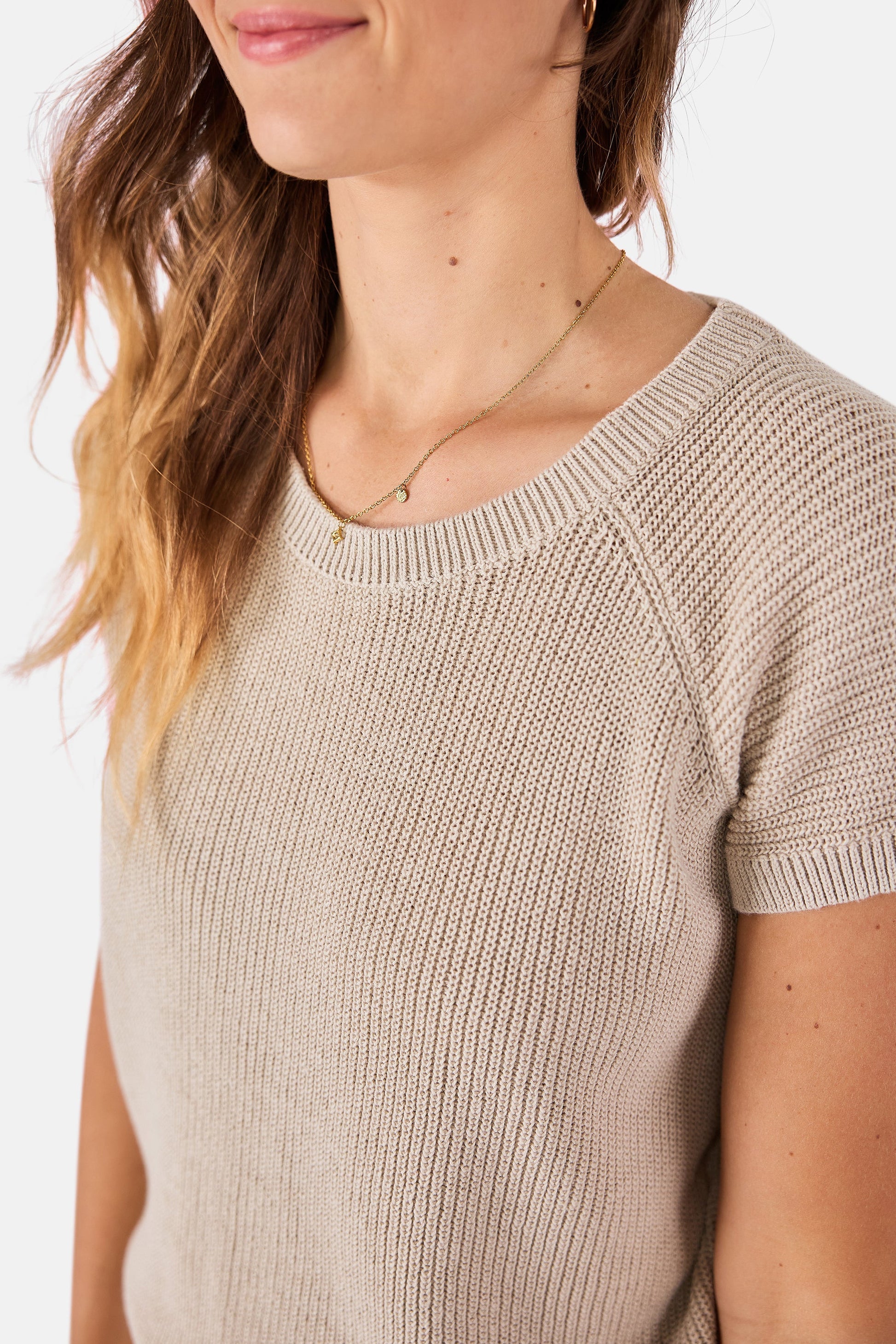 Luftige Baumwoll-Leinen-Qualität und ein figurumspielender T-Shirt-Schnitt: wenn das nicht nach der perfekten Kombination für Deine Alltagsoutfits klingt. Das Strickshirt Laure ist das perfekte LIEBLINGSSTÜCK für alle, die auch an warmen Tagen nicht auf Strick verzichten wollen.