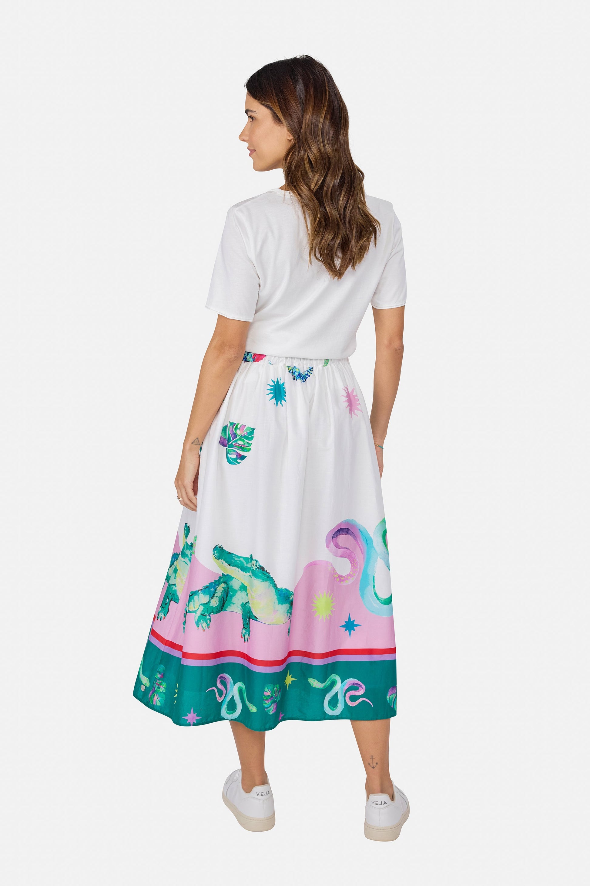 Fließend, feminin und absolut im Trend! Dieser lange Rock mit Allover-Druck begeistert mit seinem leichten Material und der wunderschönen Silhouette. Perfekt für lässige Alltagslooks oder schicke Anlässe – kombiniere ihn mit einem simplen Top oder einer Bluse und genieße den mühelosen Chic!