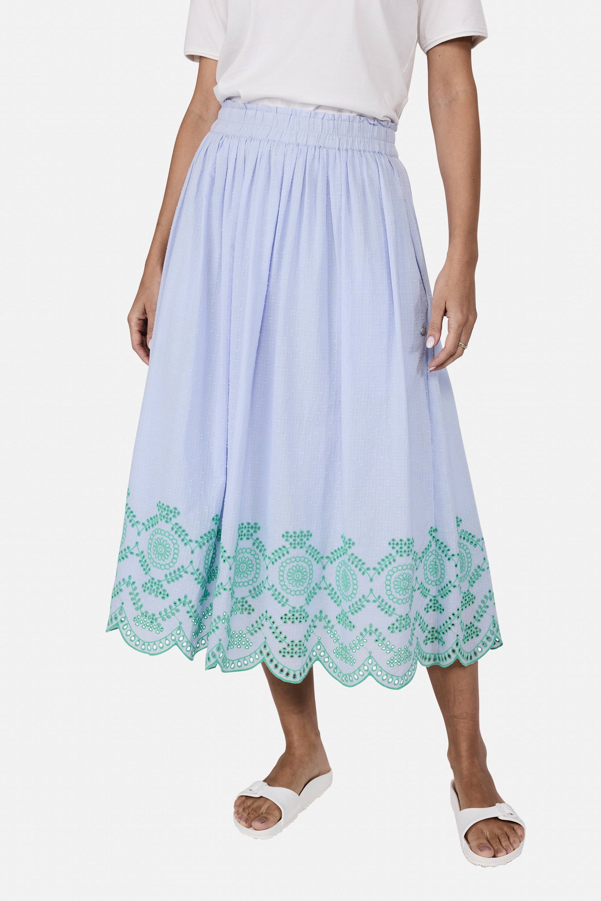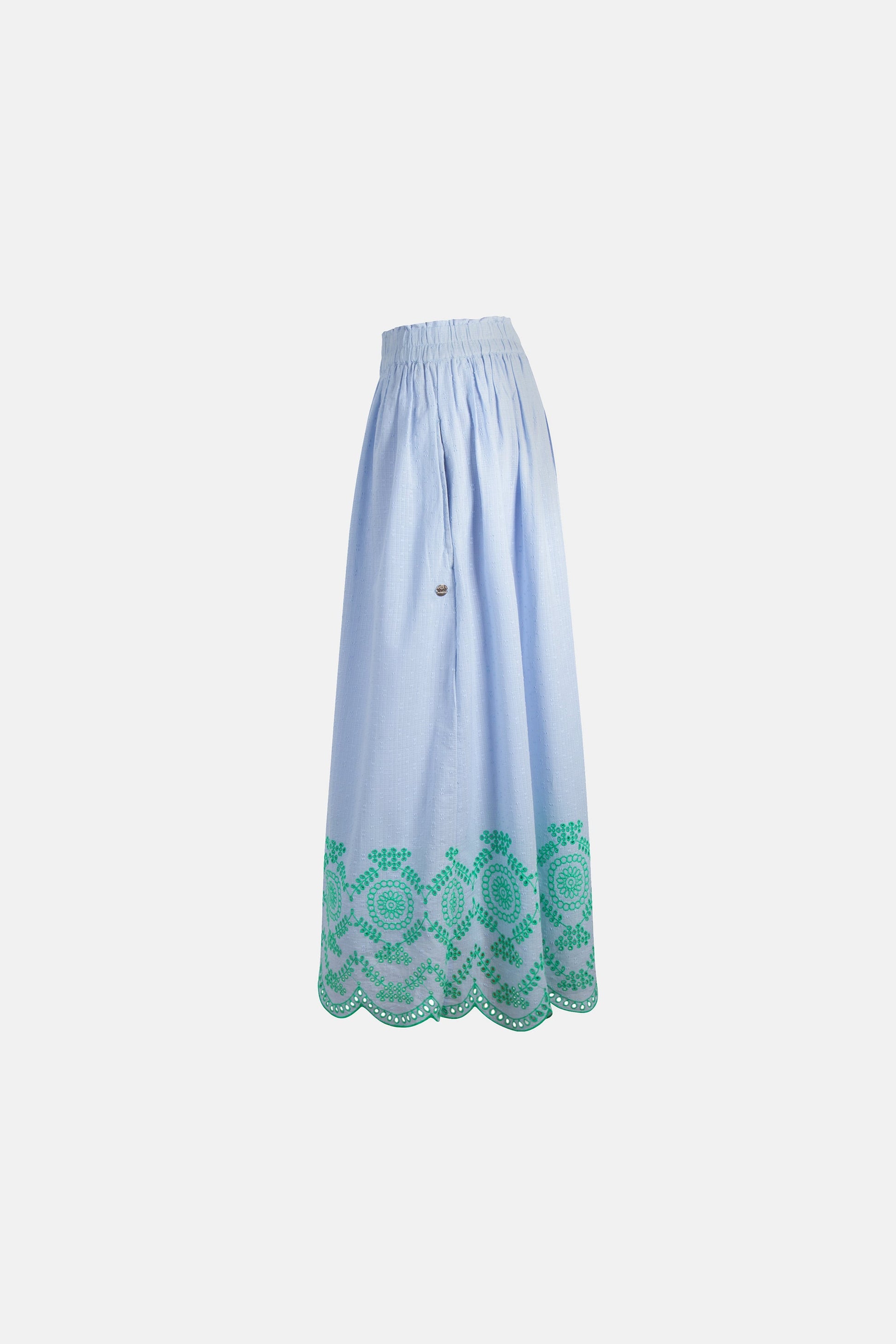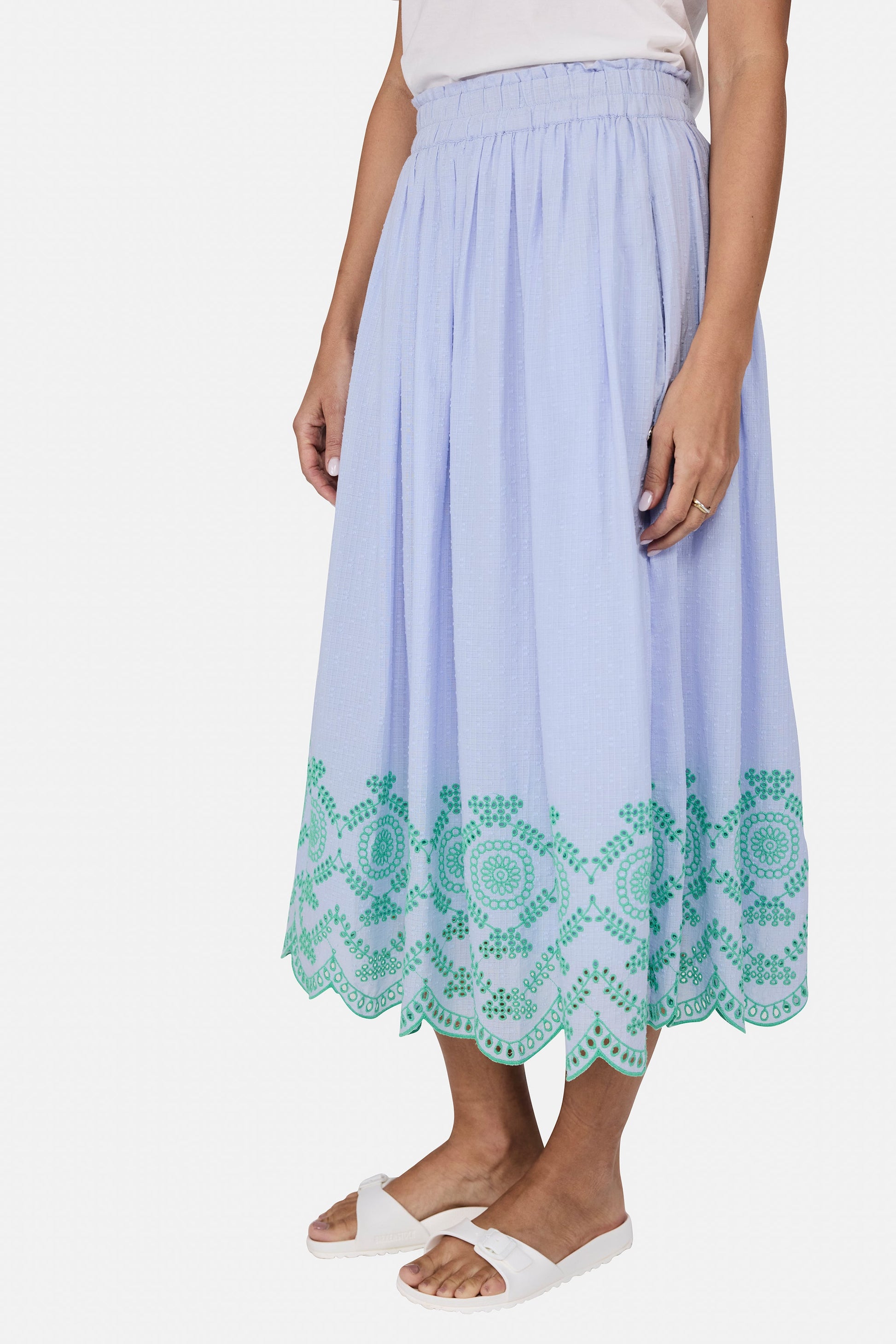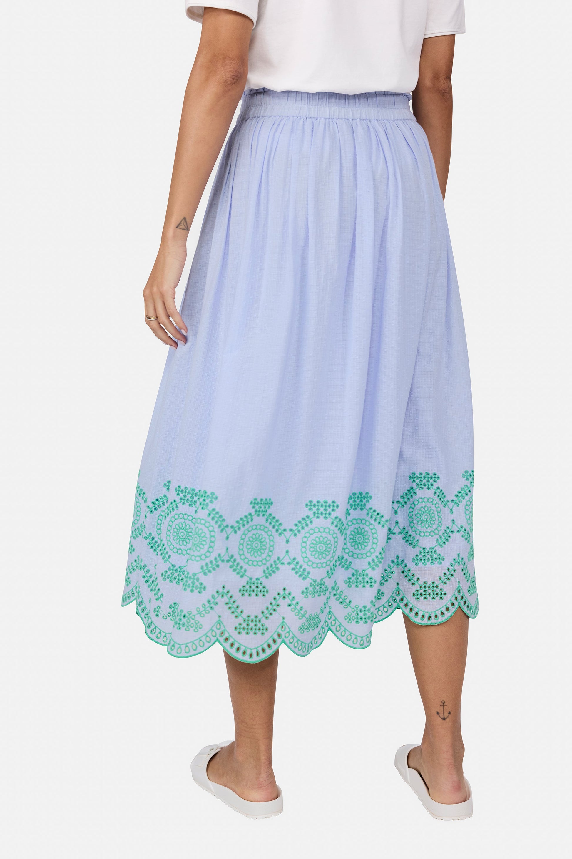 Romantisch, feminin und wunderbar leicht! Dieser Rock mit zarter Lochstickerei verleiht Deinem Look eine verspielte Eleganz und sorgt für einen besonderen Hingucker. Das luftige Material und der schmeichelnde Schnitt machen ihn zum perfekten Begleiter für warme Tage – ob casual mit Sneakers oder schick mit Sandalen.