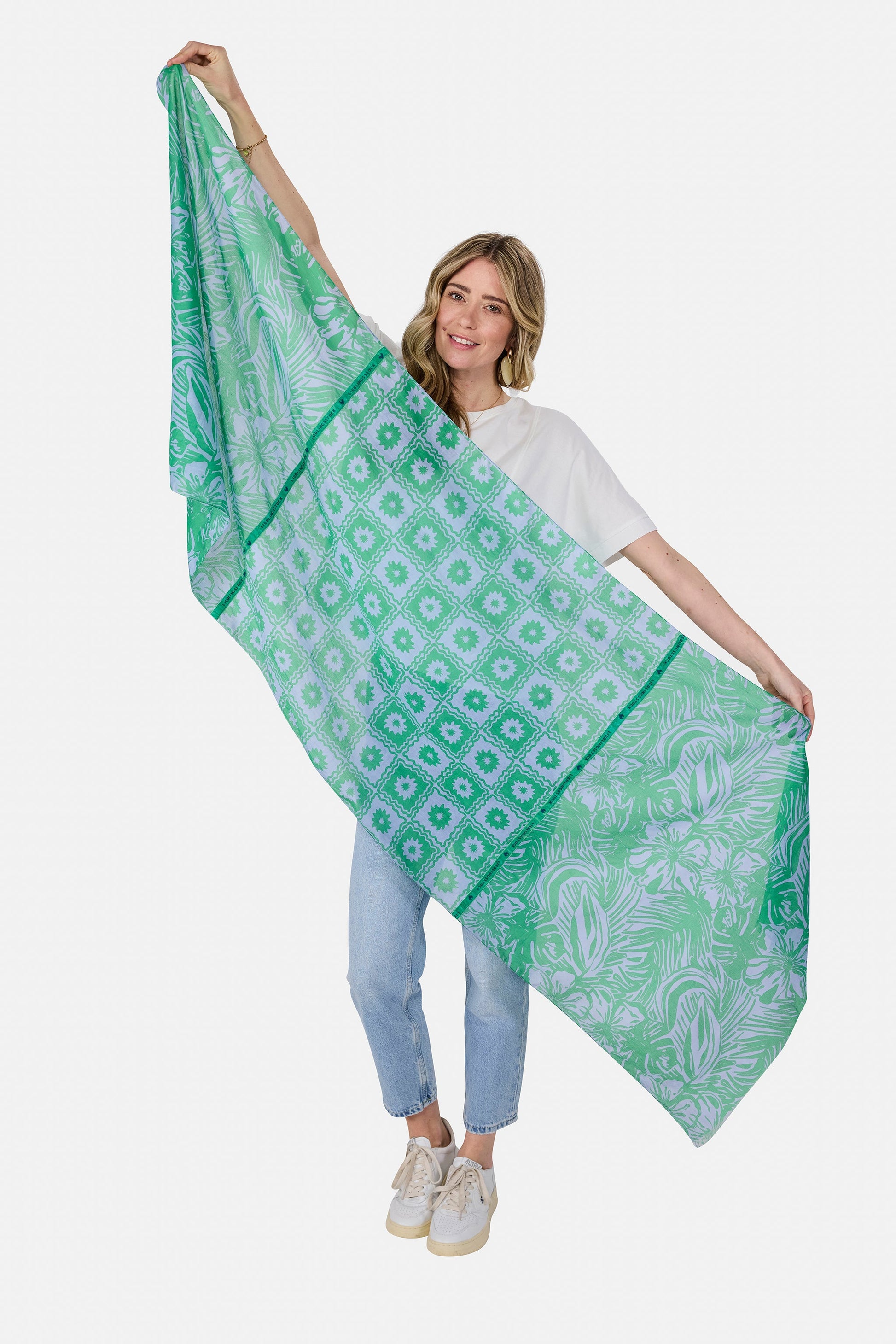 Ein Hauch von Eleganz für Deine Outfits! Dieser Schal kombiniert einen wunderschönen Druck mit edlen Samtbändern und wird so zum stilvollen Hingucker. Das leichte, angenehm weiche Material sorgt für ein angenehmes Tragegefühl – perfekt zum Veredeln Deiner Looks, ob lässig oder elegant.