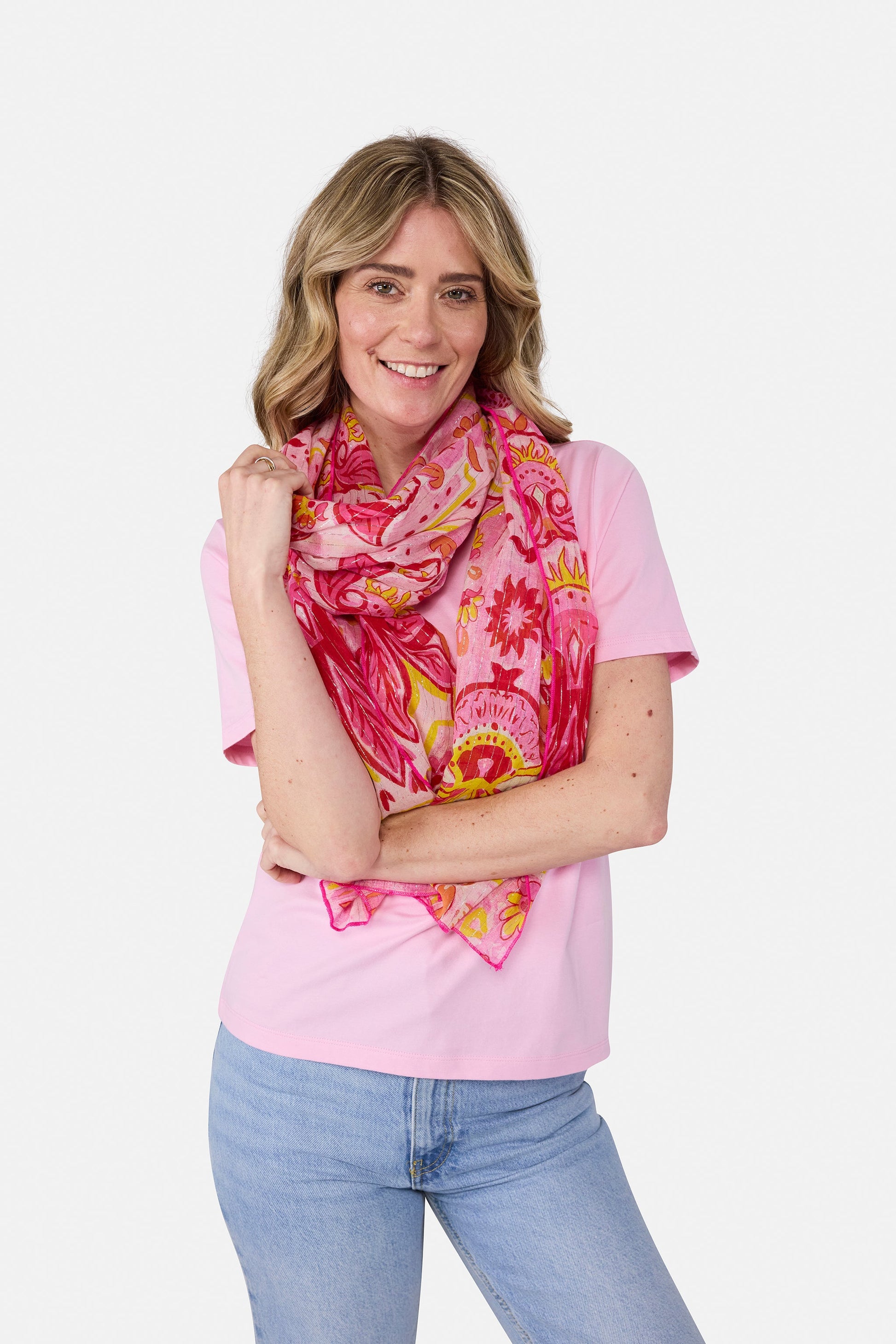 Dein neues Accessoire für kreative Looks: Der Schal mit mehrfarbigem Druck setzt modische Akzente und passt sich mühelos Deinem Stil an.