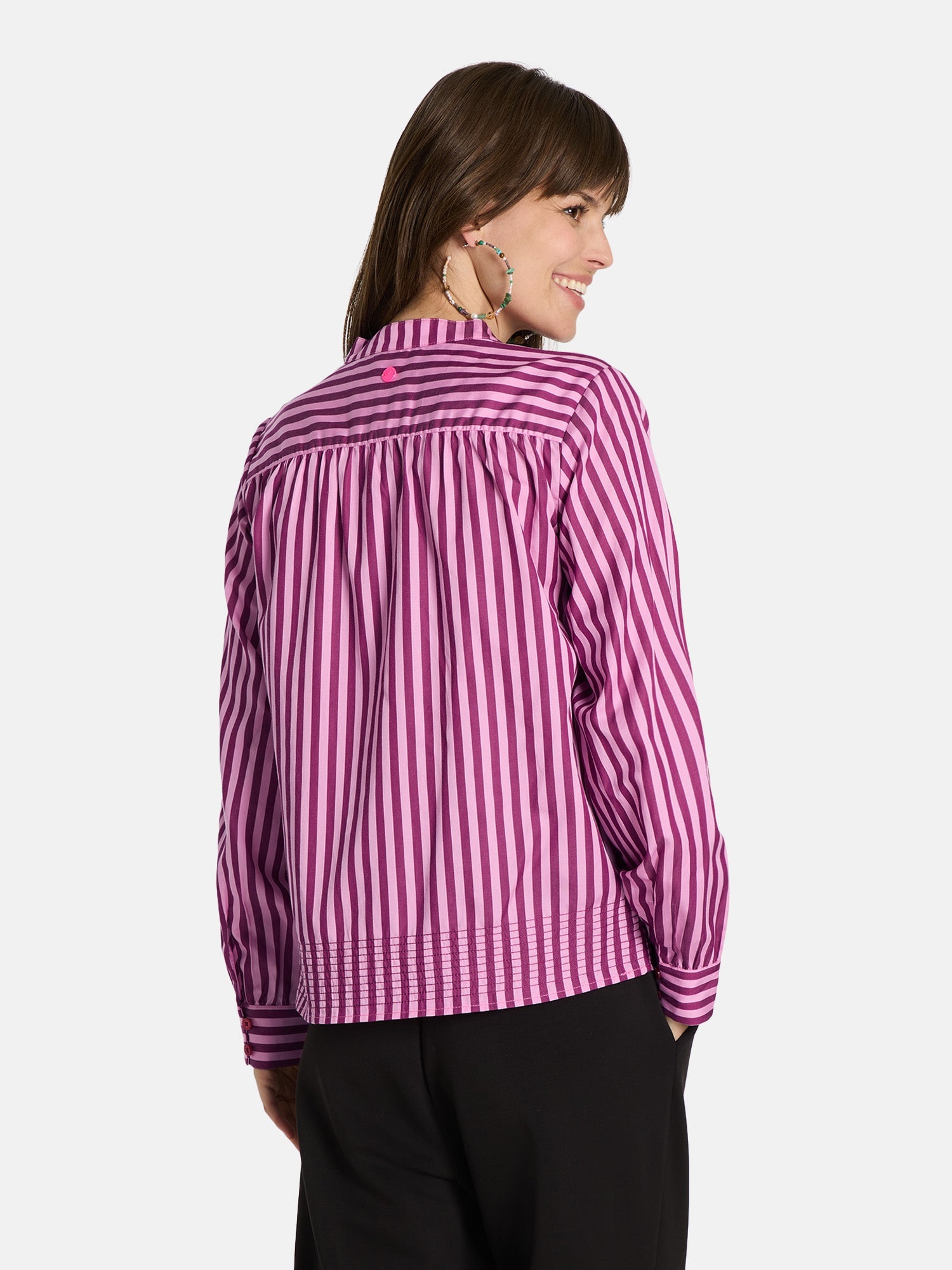 Diese gestreifte Schlupfbluse ist ein echtes LIEBLINGSSTÜCK für Alltag und Büro. Die feinen Biesen am Saum geben dem Look Struktur und eine feminine Note. Bequem und charmant zugleich.