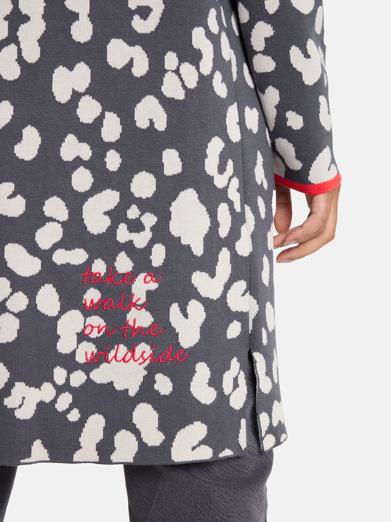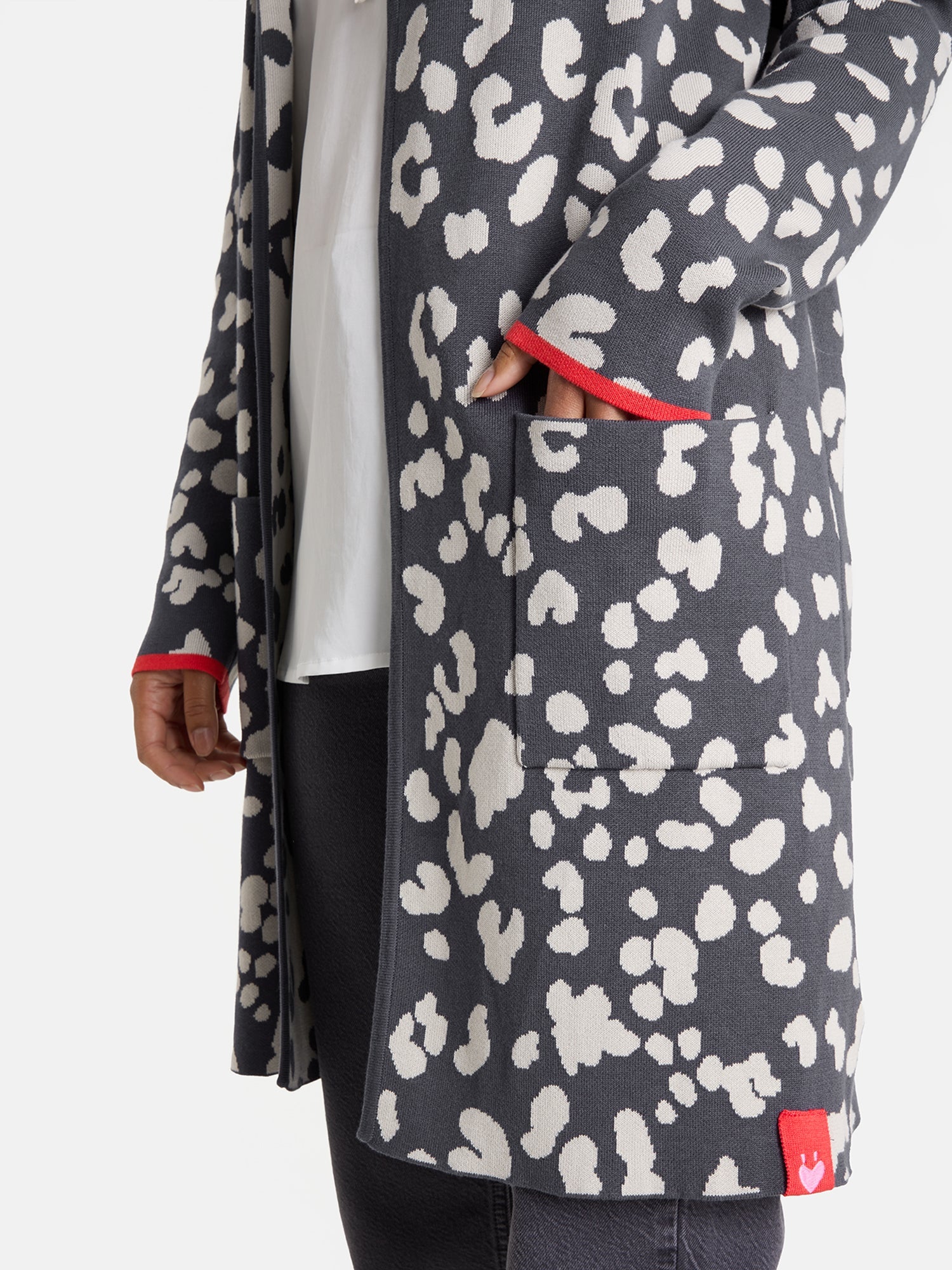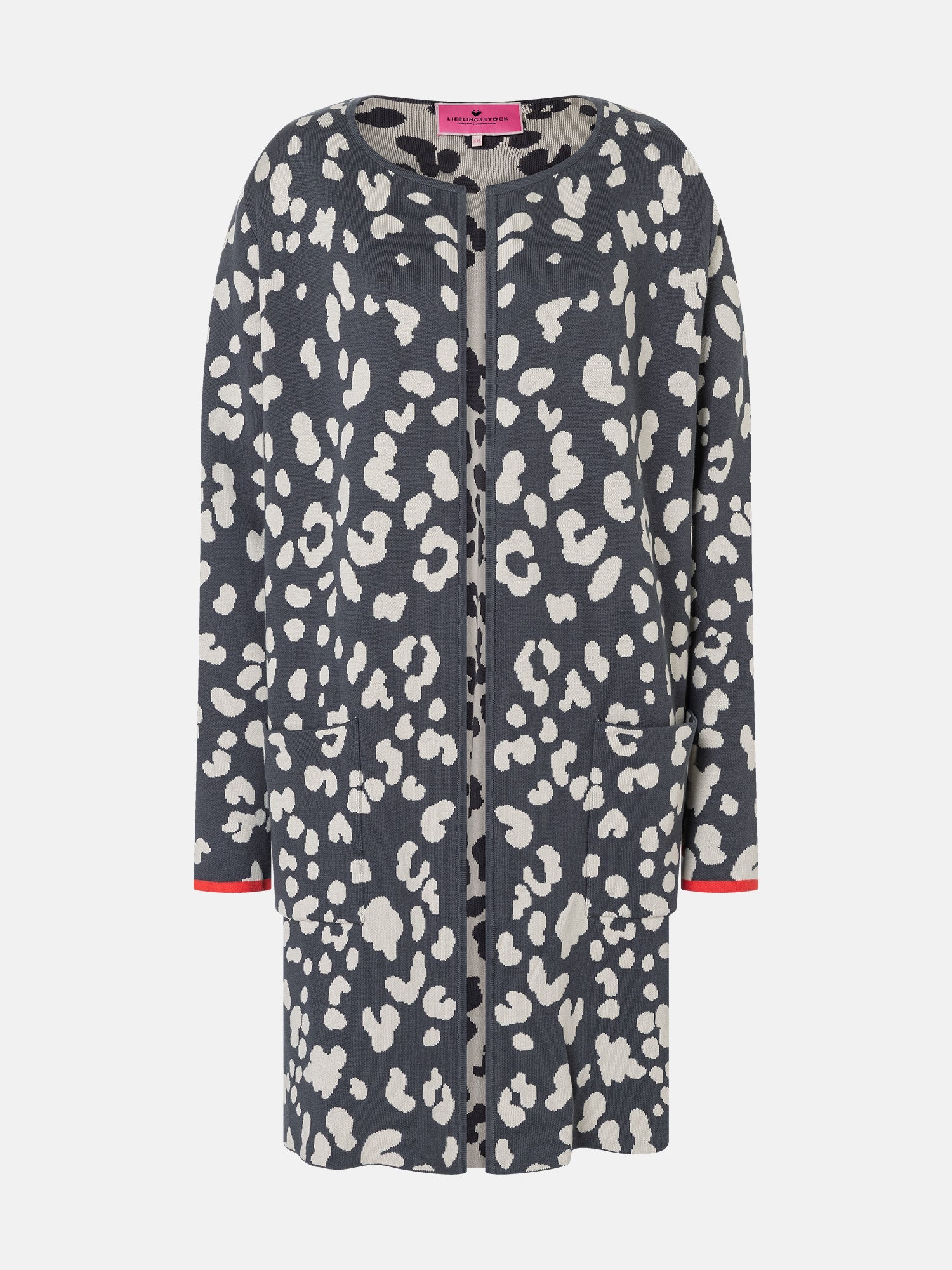 Diese lange Strickjacke von LIEBLINGSSTÜCK beeindruckt mit ihrem modernen Animal-Print und verleiht Deinem Outfit einen markanten Look. Der offene Schnitt sorgt für eine entspannte Passform und macht die Jacke zu einem idealen Layering-Teil. Praktische aufgesetzte Taschen runden das Design funktional und stilvoll ab. Kontrastdetails an den Ärmelenden setzen einen frischen Akzent und unterstreichen den besonderen Charakter des Modells. Ob lässig über Jeans oder elegant kombiniert – diese Jacke ist ein echter Allrounder. Ein Statement-Piece, das Stil und Komfort perfekt verbindet.