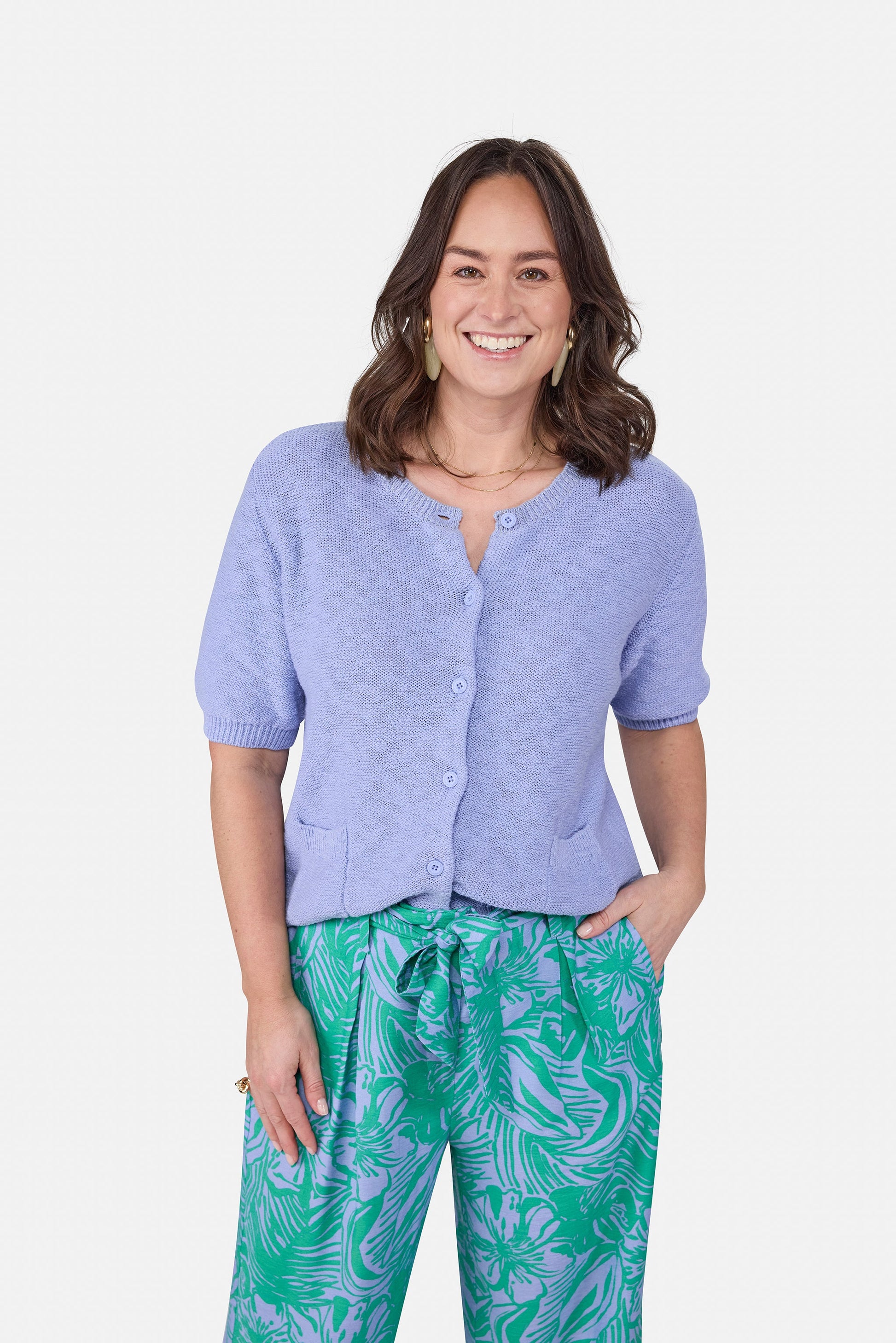 Kuschelig, stylisch und perfekt für jeden Anlass! Diese kürzere Strickjacke mit aufgesetzten Taschen verleiht Deinem Look eine moderne und dennoch gemütliche Note. Der lockere Schnitt sorgt für eine schöne Passform, während die praktischen Taschen nicht nur schick aussehen, sondern auch Platz für kleine Essentials bieten.