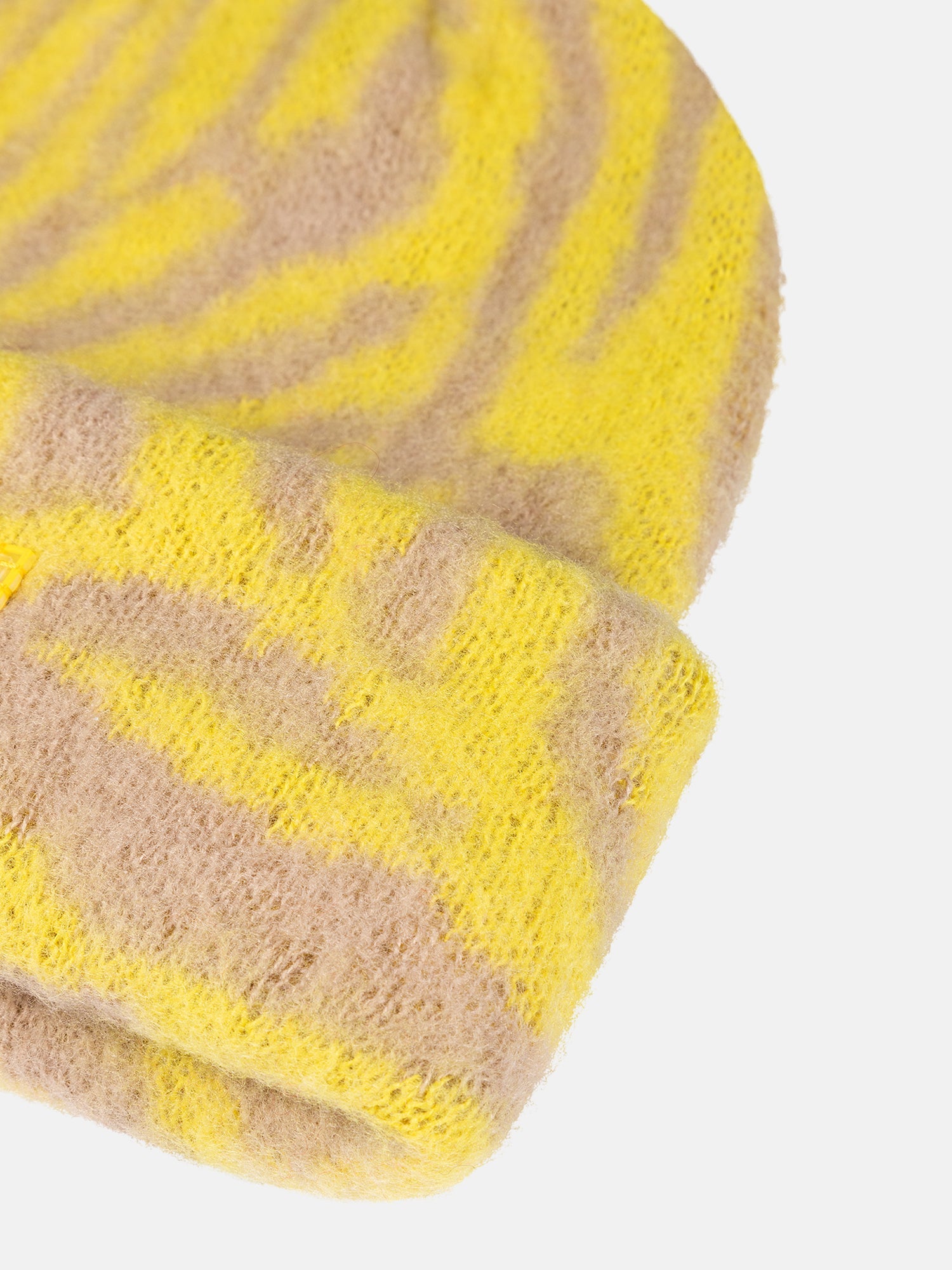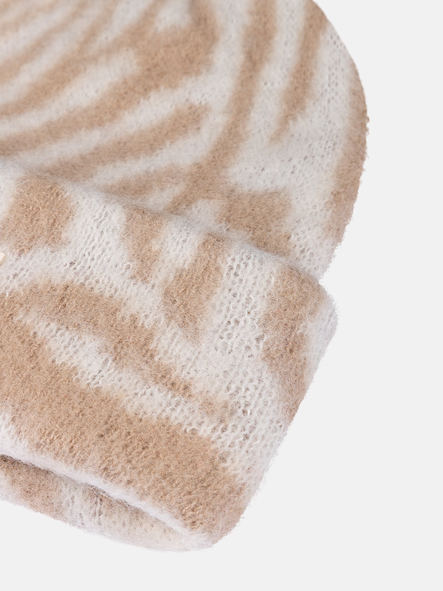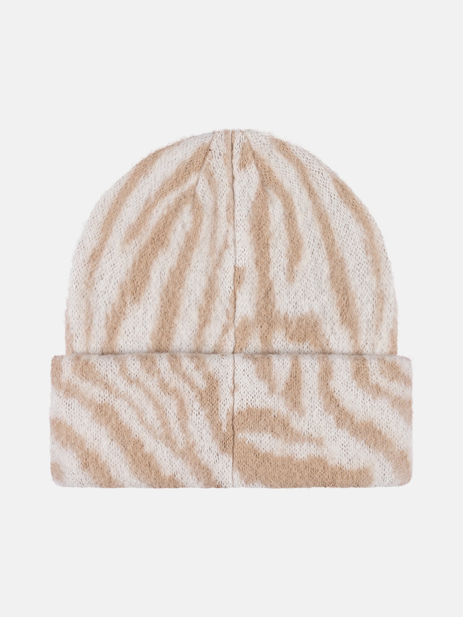 Weiche Strickmütze mit modischem Muster und umgeschlagenem Saum. Auf der Vorderseite ziert ein dezenter Patch mit Schriftzug die Mütze. Das kuschelige Material sorgt für Wärme und rundet winterliche Outfits stilvoll ab.