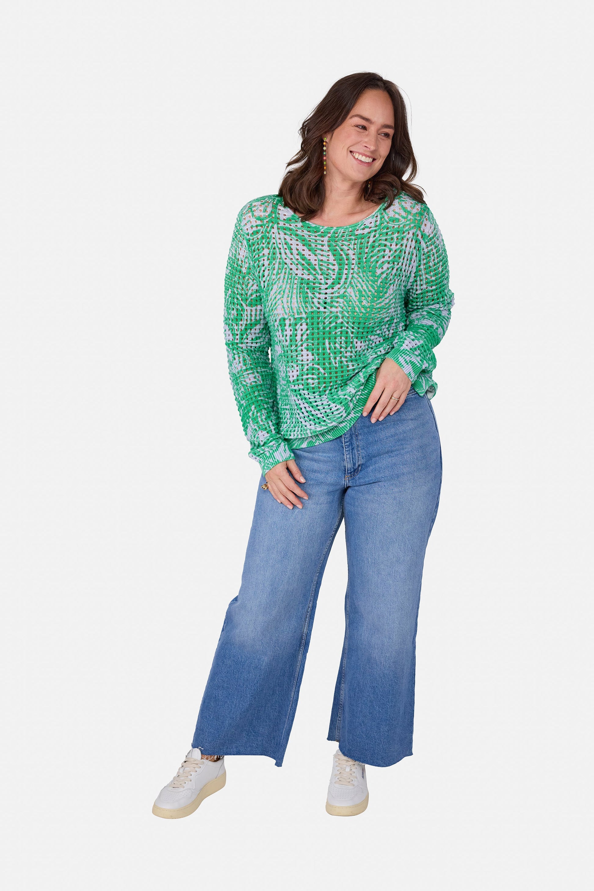 Lässig, luftig und absolut im Trend! Dieser Strickpullover mit Netzstruktur verleiht Deinem Look eine moderne und stylische Note. Die leichte, durchbrochene Strickart sorgt für eine tolle Struktur und macht ihn zum perfekten Begleiter für angesagte Layering-Looks. Ob über ein Top oder ein Kleid getragen – mit diesem LIEBLINGSSTÜCK bist Du immer modisch unterwegs!
