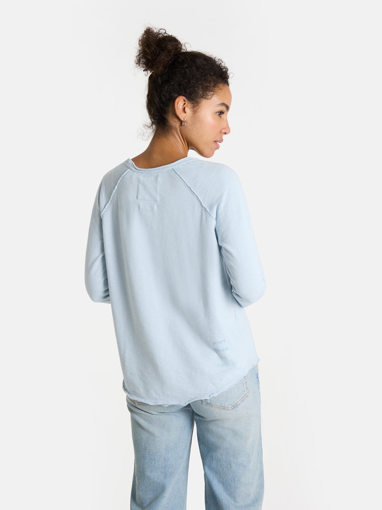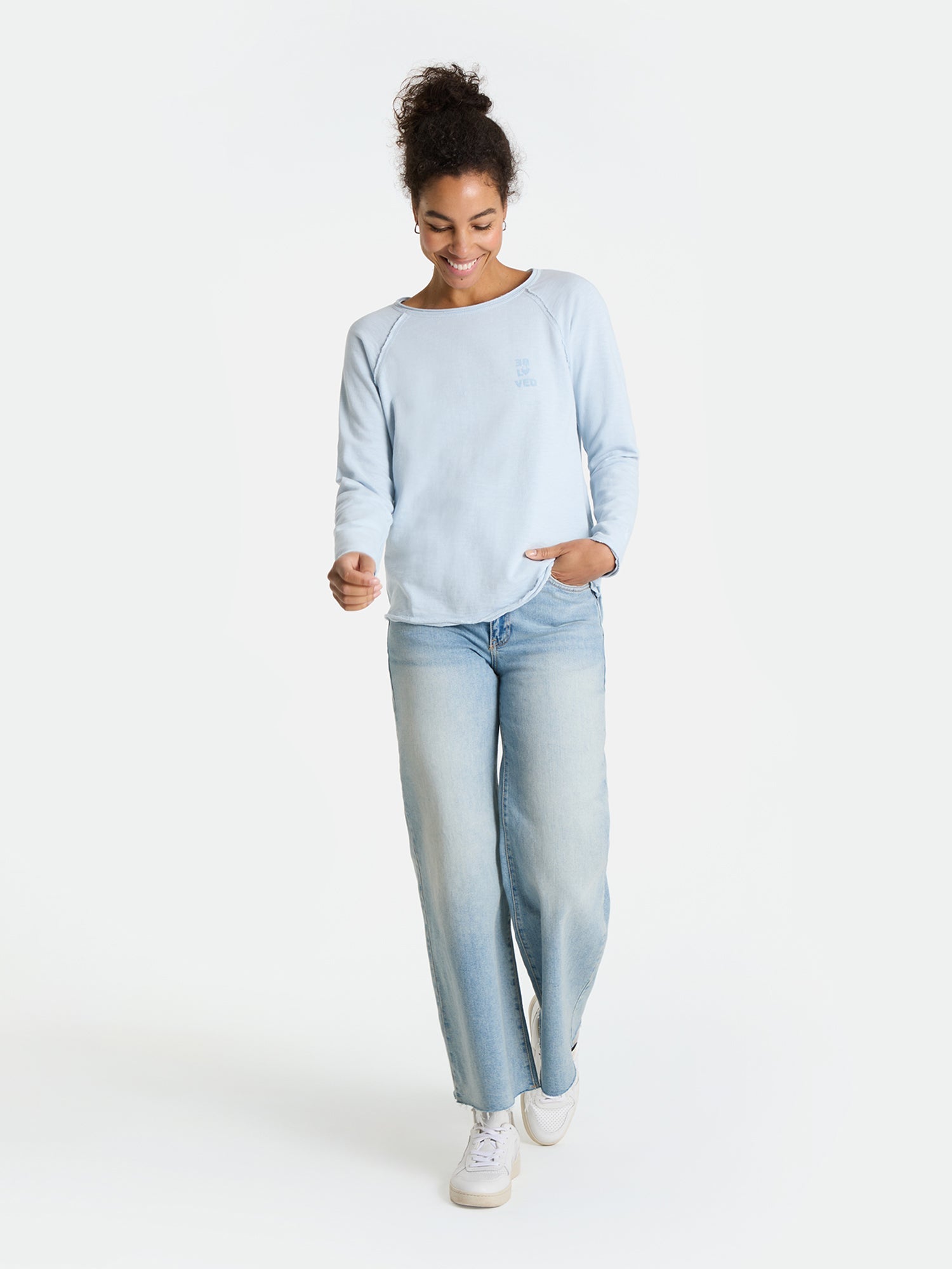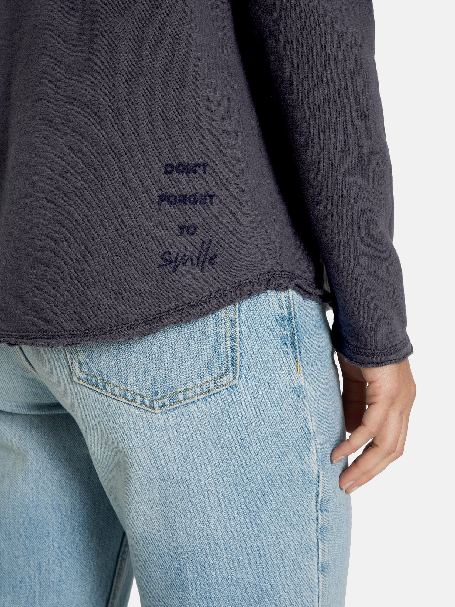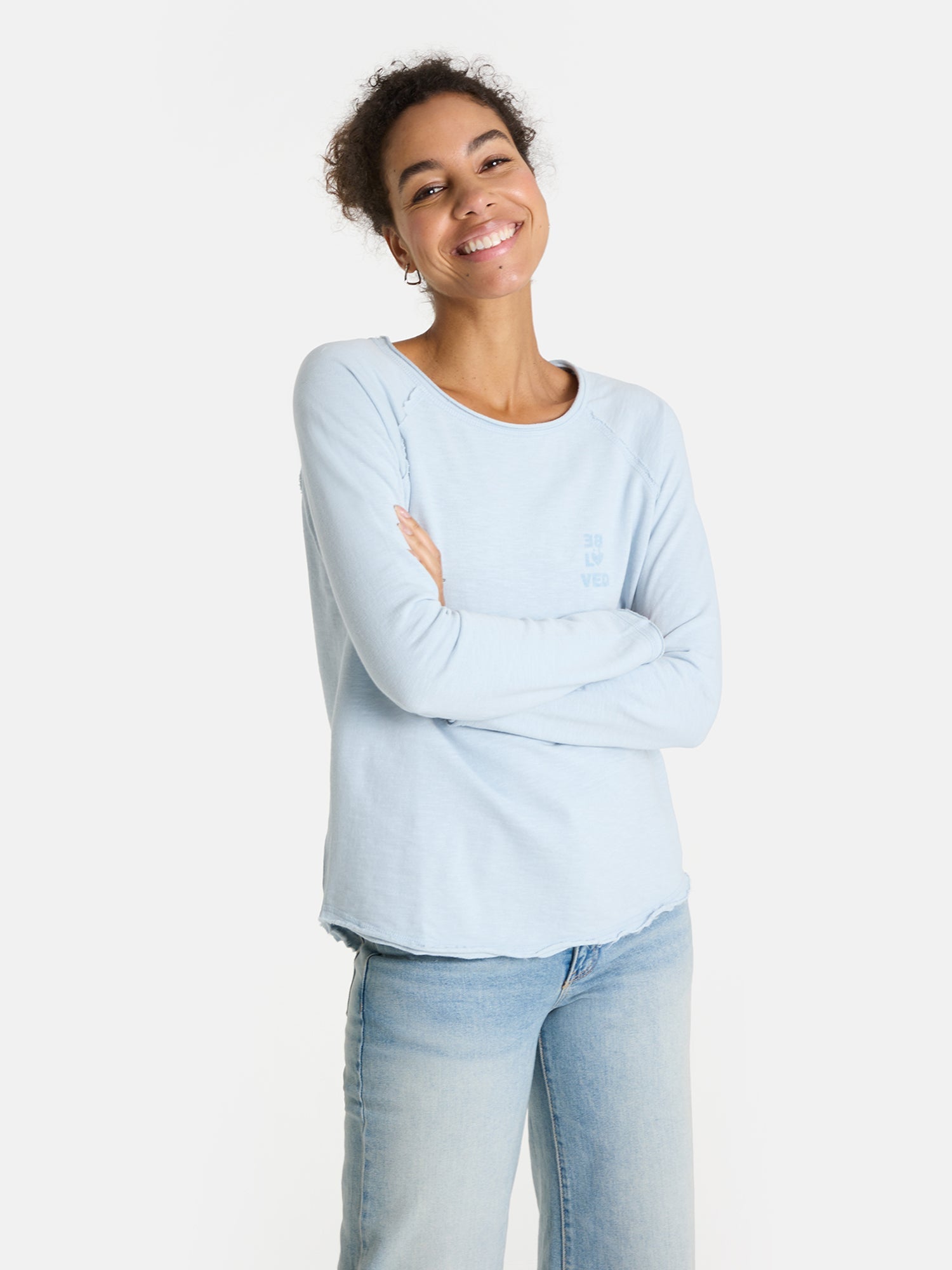 Dieses LIEBLINGSSTÜCK bringt durch die aufwendige Waschung und liebevolle Details wie Flockprint und Stickerei eine besondere Note in Deinen Look. Ideal für entspannte und modische Momente.