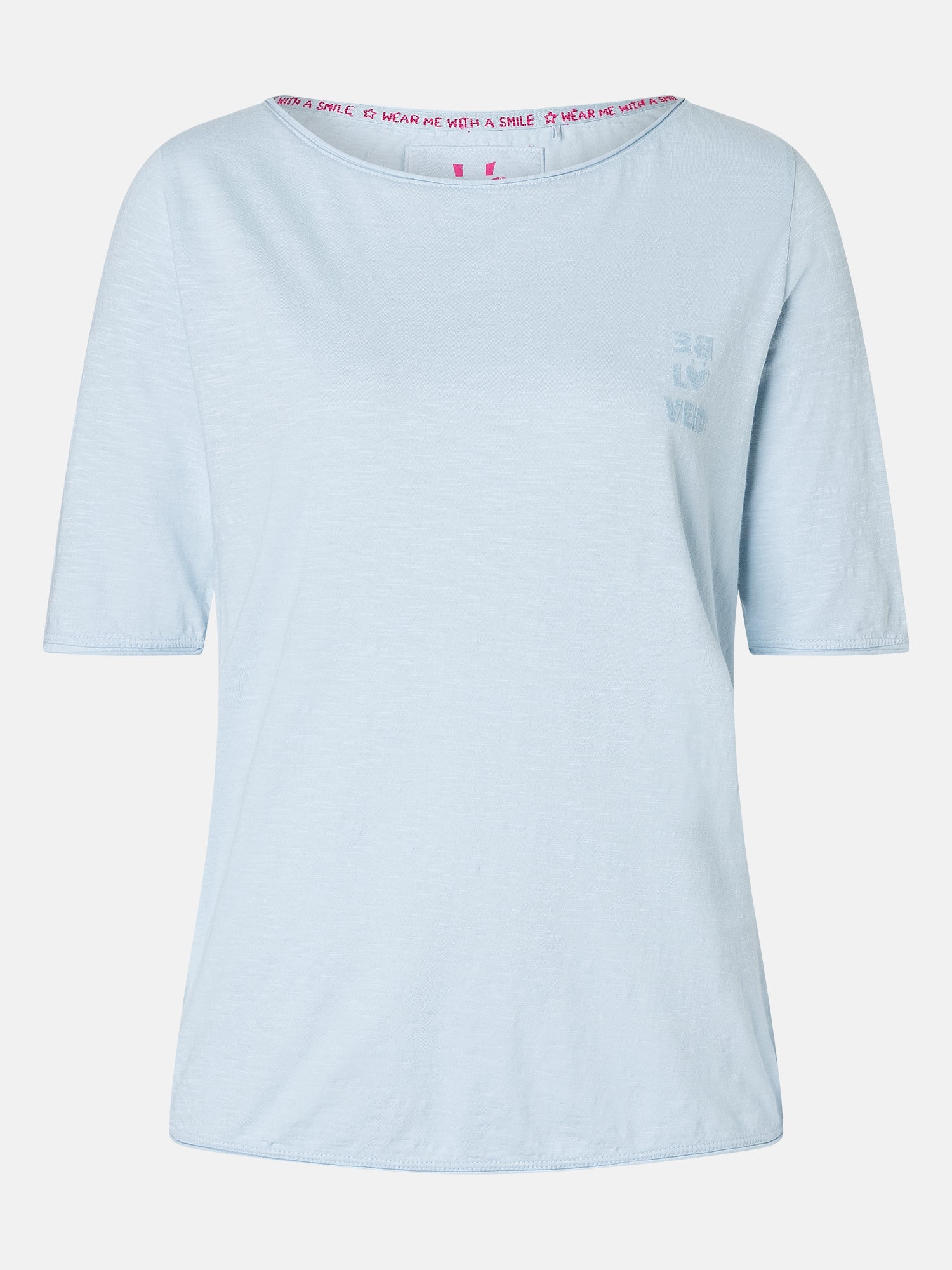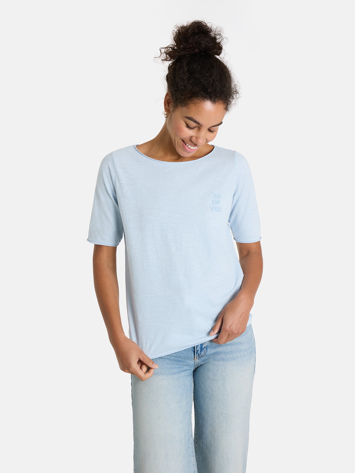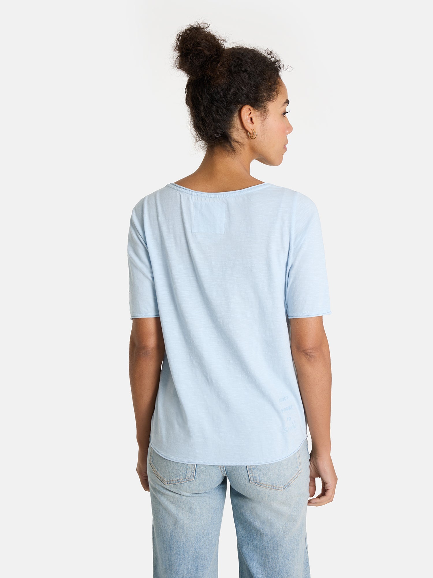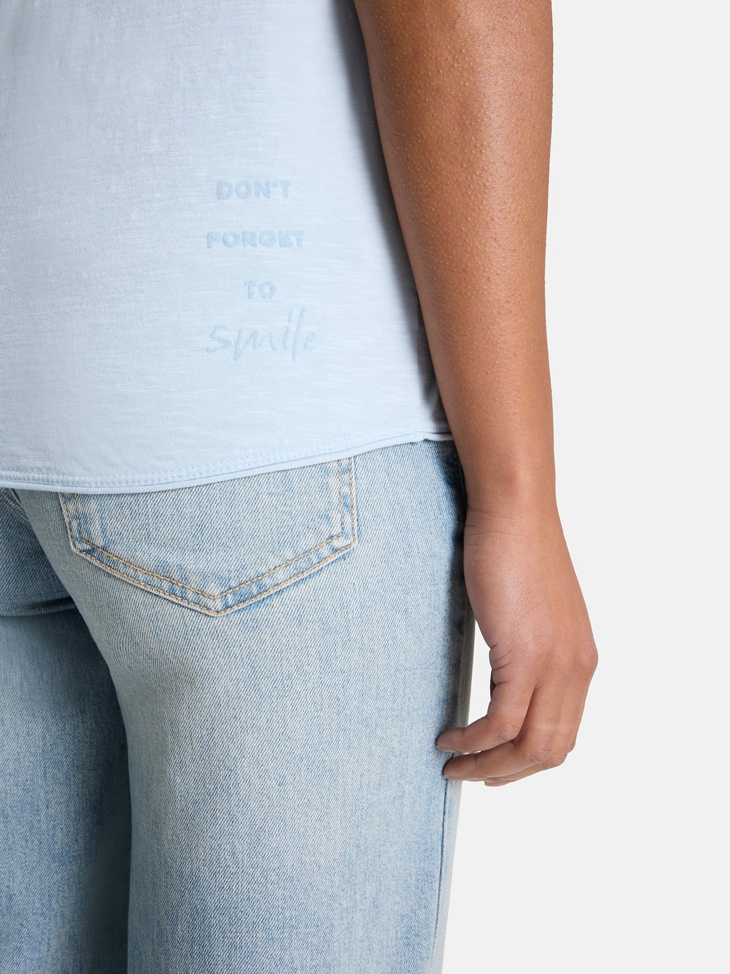 Dieses LIEBLINGSSTÜCK ist wie gemacht für besondere Alltagsmomente. Mit feiner Stickerei und zartem Flockprint auf Vorder- und Rückseite wird Dein Look einzigartig. Ein Shirt zum Wohlfühlen mit Stil.