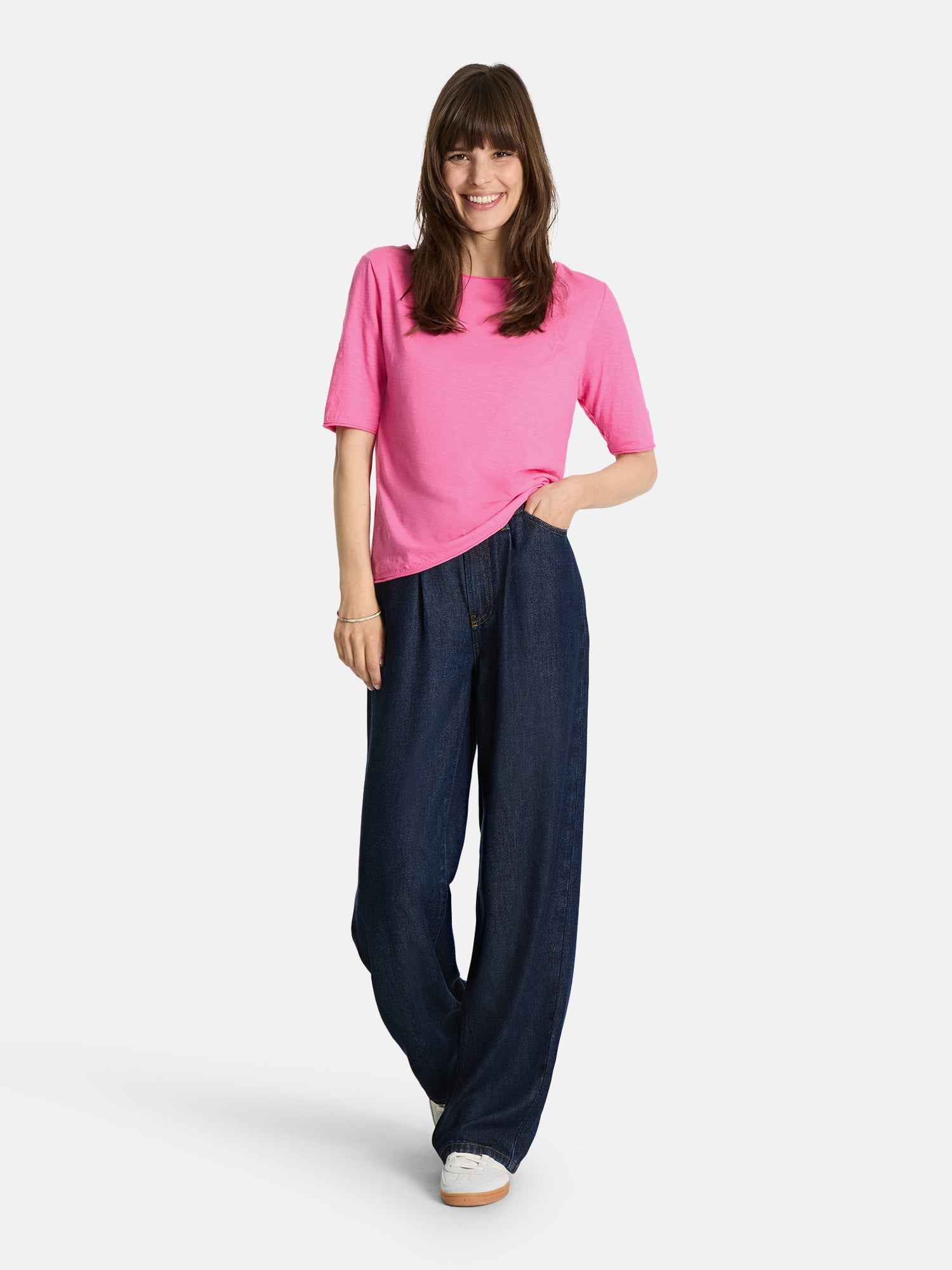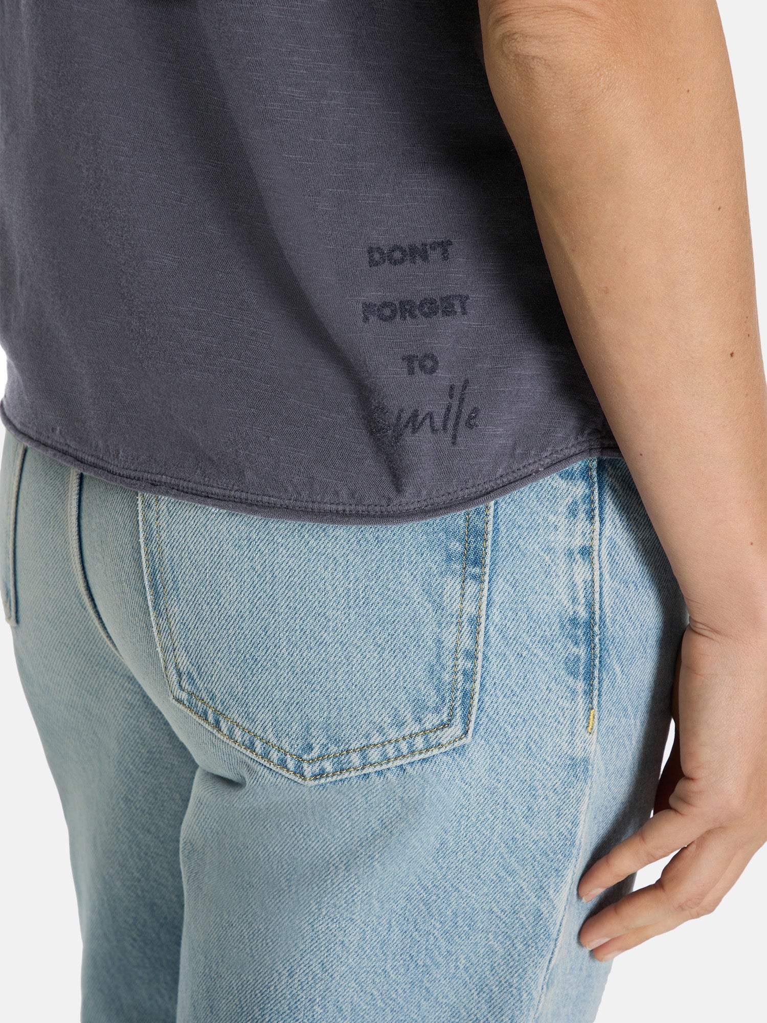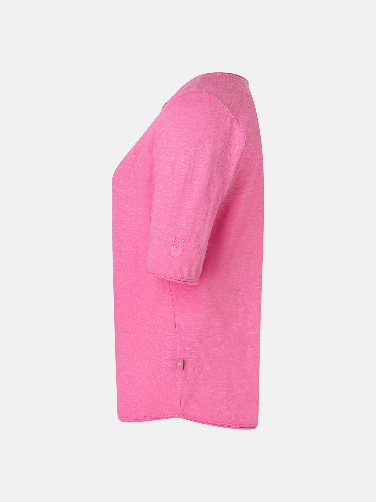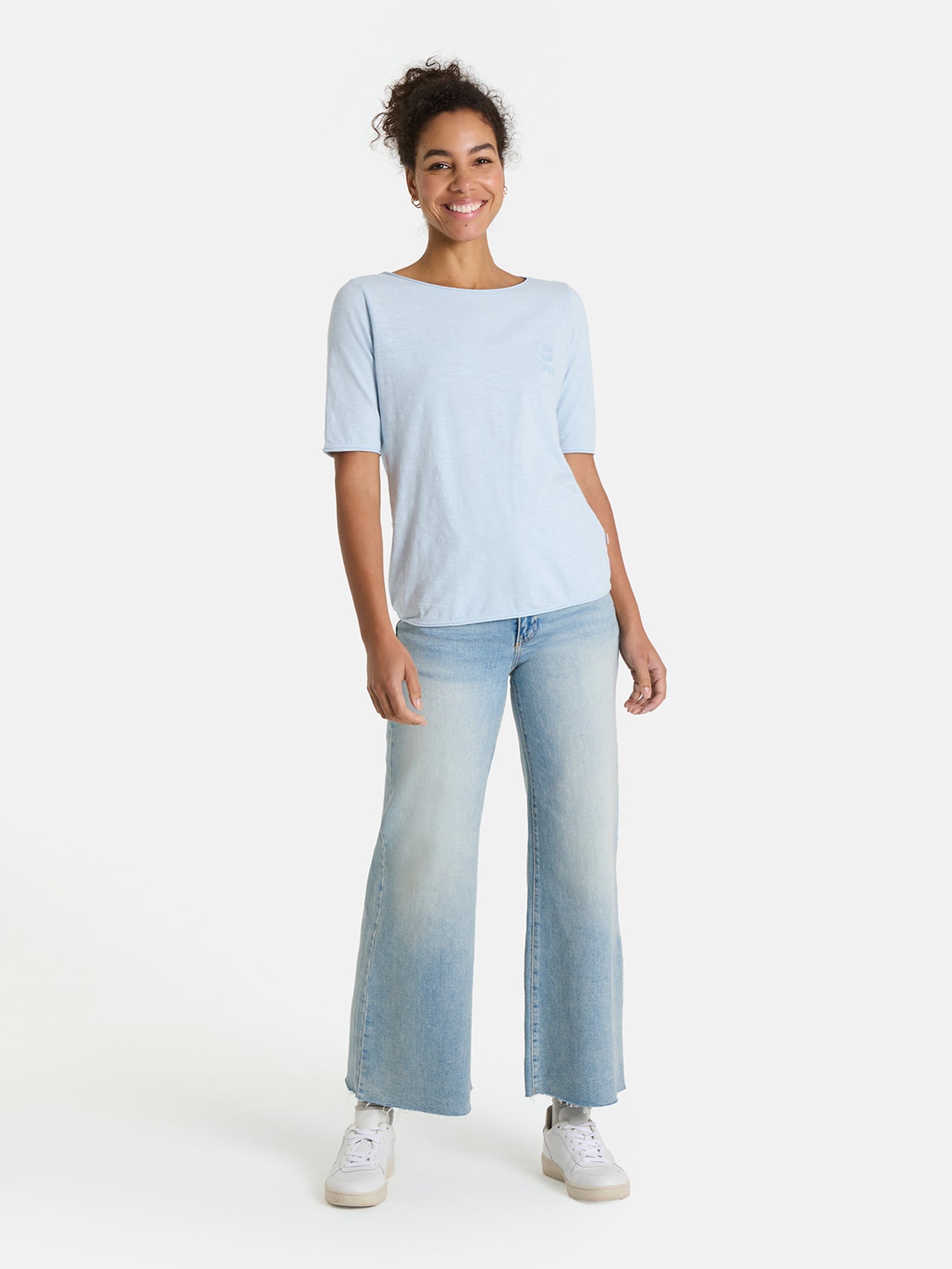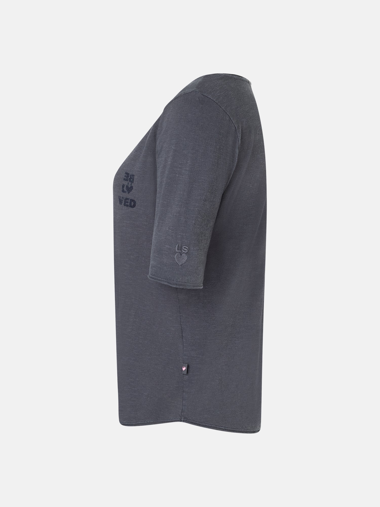 Dieses LIEBLINGSSTÜCK ist wie gemacht für besondere Alltagsmomente. Mit feiner Stickerei und zartem Flockprint auf Vorder- und Rückseite wird Dein Look einzigartig. Ein Shirt zum Wohlfühlen mit Stil.