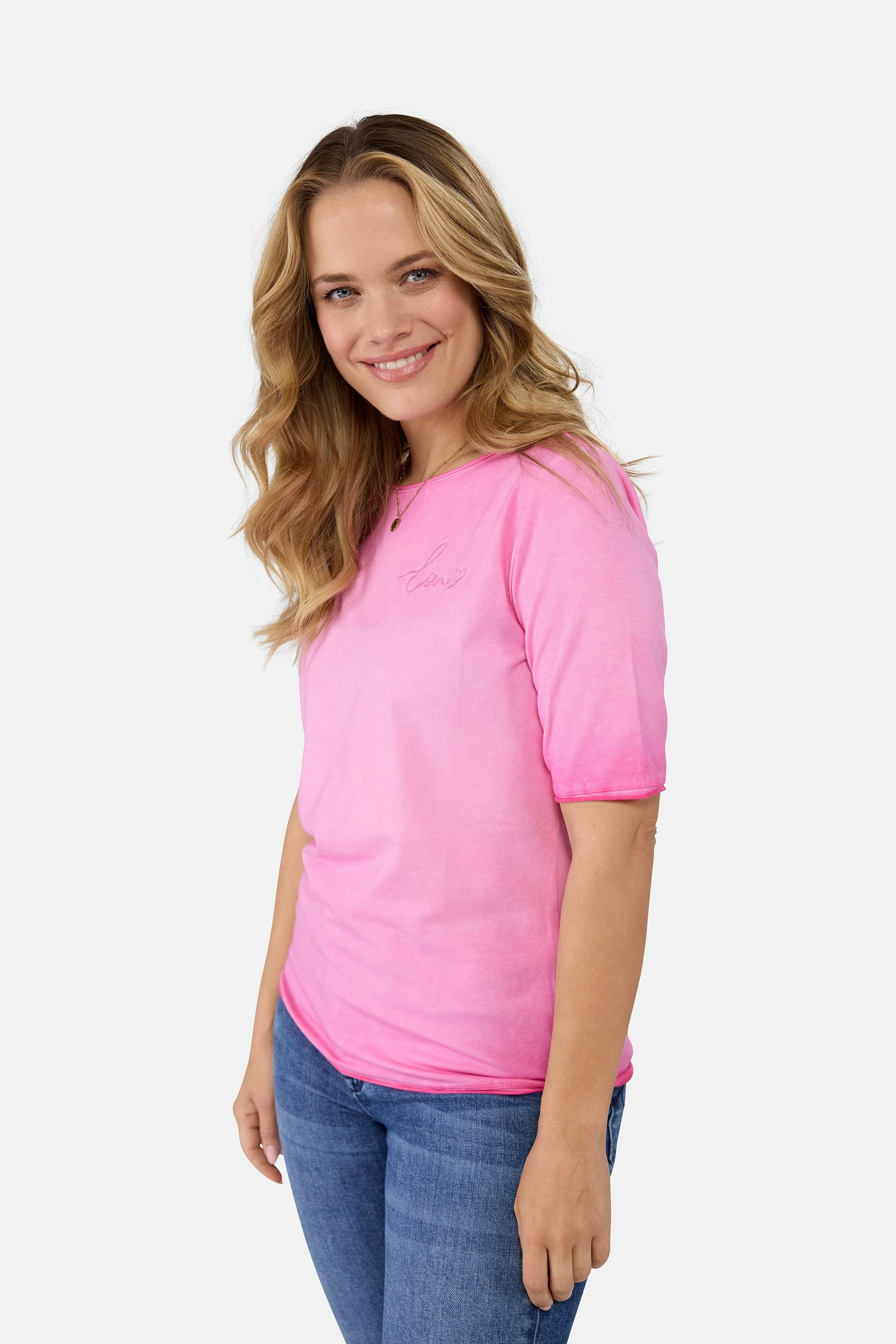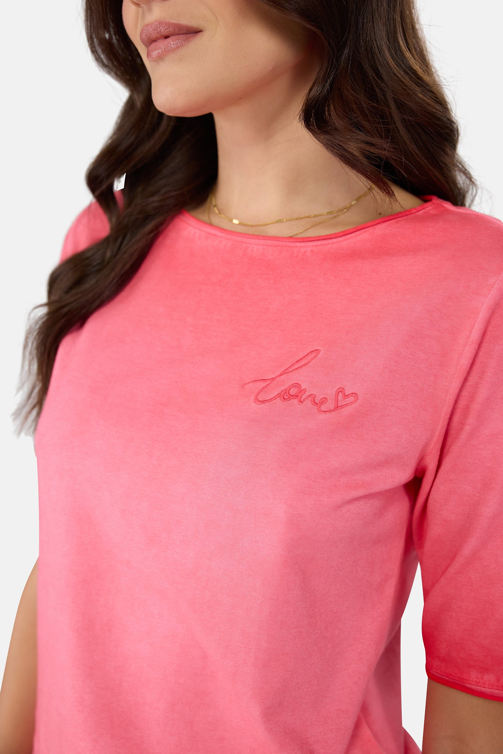Dieses T-Shirt mit 1/2 Arm ist ein lässiger Begleiter für Deinen Alltag. Angenehmer Tragekomfort und typische LIEBLINGSSTÜCK-Details wie ein Stempel-FLockprint im Rückteil und eine verspielte "love"-Stickerei auf der Brust, sorgen für einen charmanten Touch. Du wirst schon sehen - dieses Shirt wird im Handumdrehen Dein neues LIEBLINGSSTÜCK!