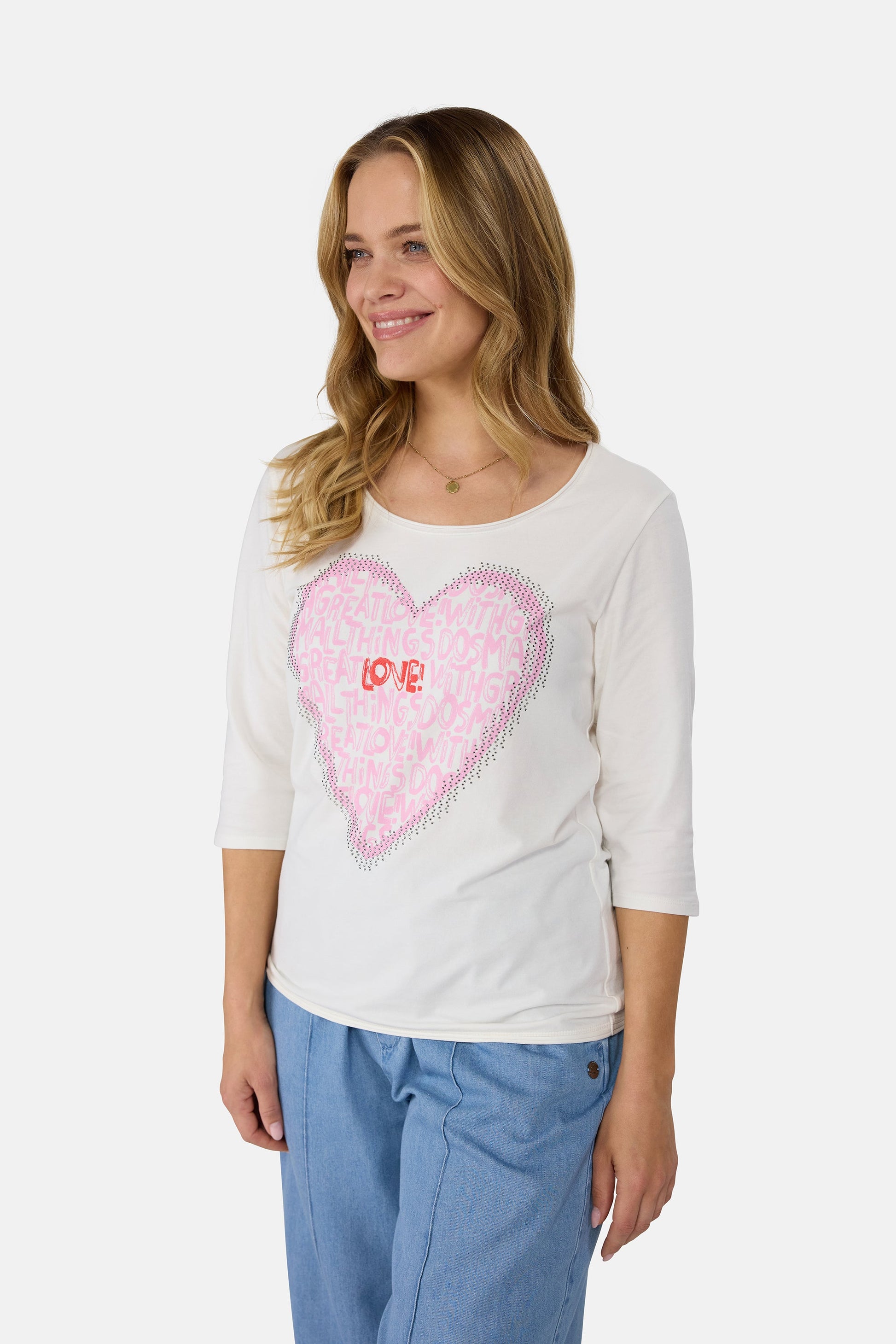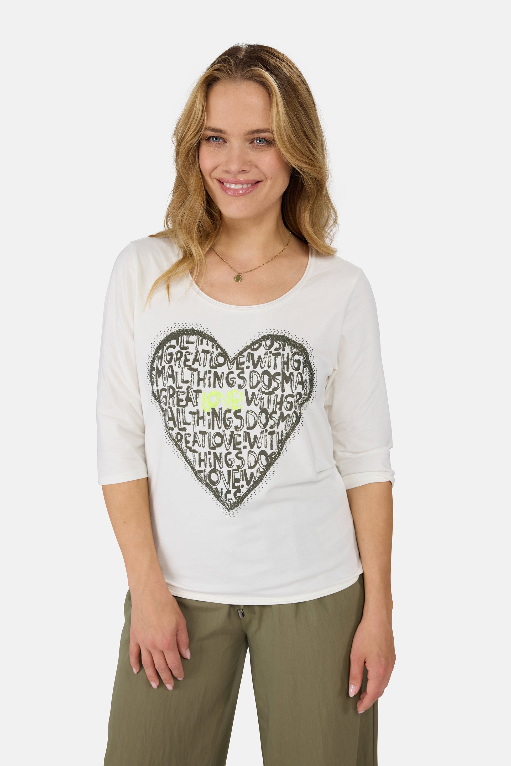 Das 3/4 Arm Shirt mit Herz-Frontprint und dem Wording "Do all things with great love" ist ein inspirierendes und stylisches Kleidungsstück, das sowohl Komfort als auch eine kraftvolle Botschaft bietet. Der Herz-Frontprint symbolisiert Liebe und Positivität, was dem Shirt eine freundliche und einladende Ausstrahlung verleiht. Du wirst es lieben!