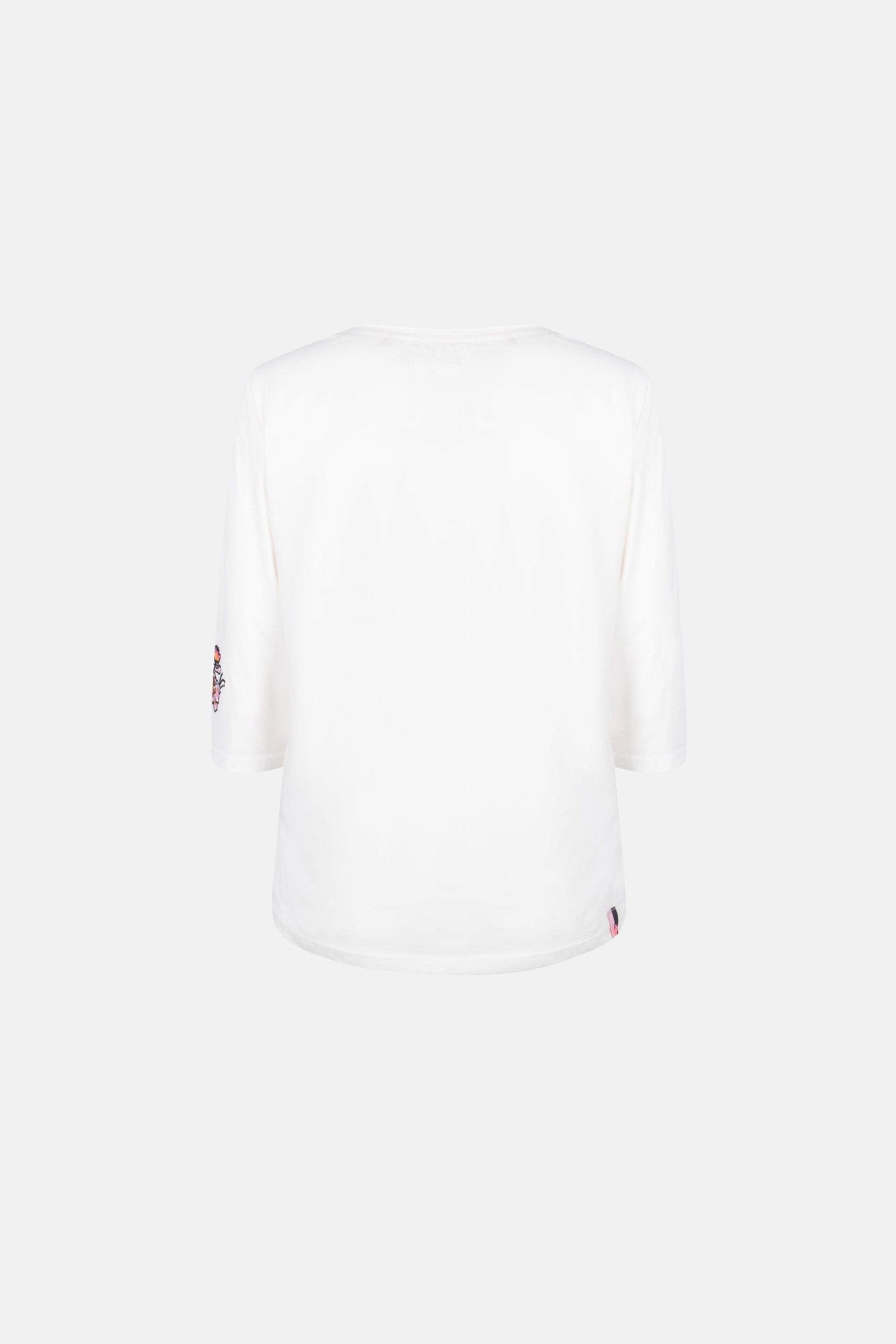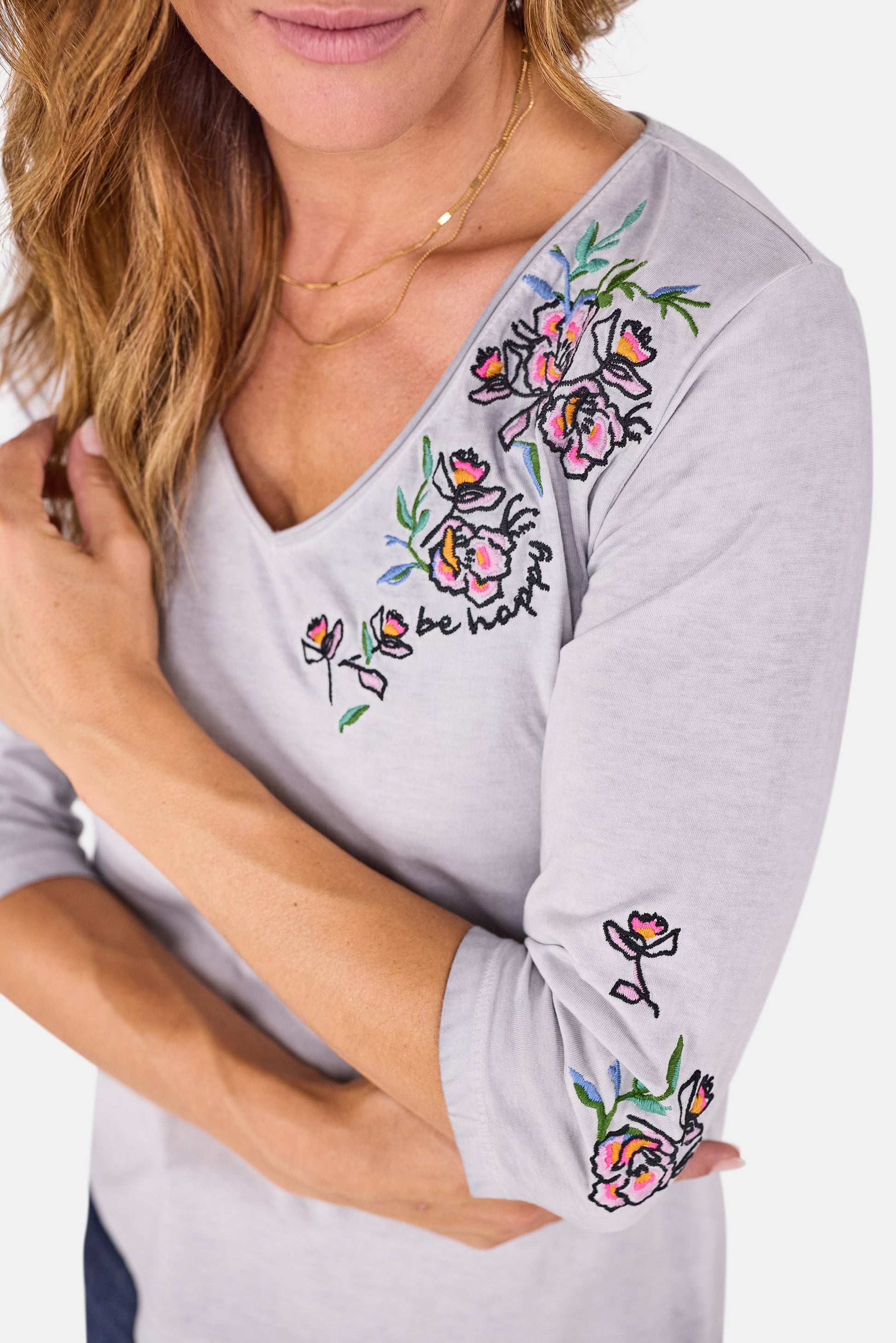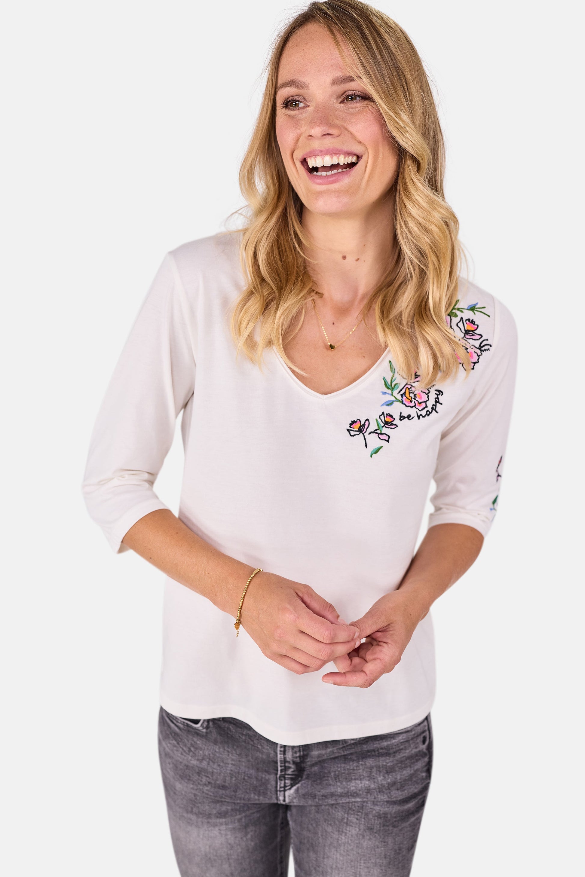 Dieses zauberhafte T-Shirt mit dem Motiv der Blumenstickerei bringt einen Hauch von Frische und Eleganz in Deinen Kleiderschrank. Die liebevoll gestalteten Blumen verleihen dem Shirt einen verspielten und femininen Look. Hergestellt aus softem Material, bietet es angenehmen Tragekomfort und ist perfekt für lässige Tage oder als stimmungsvolles Highlight in Deinem Outfit!