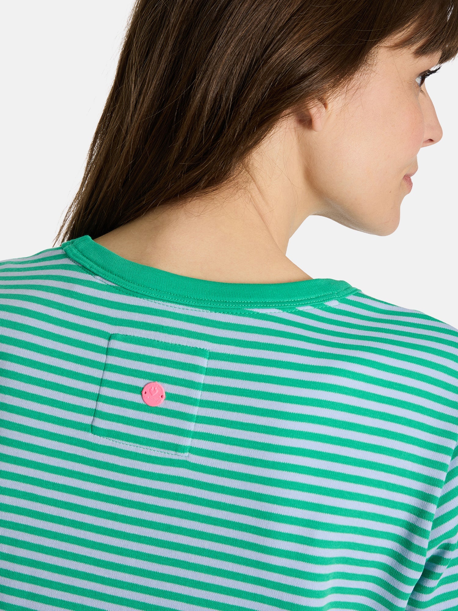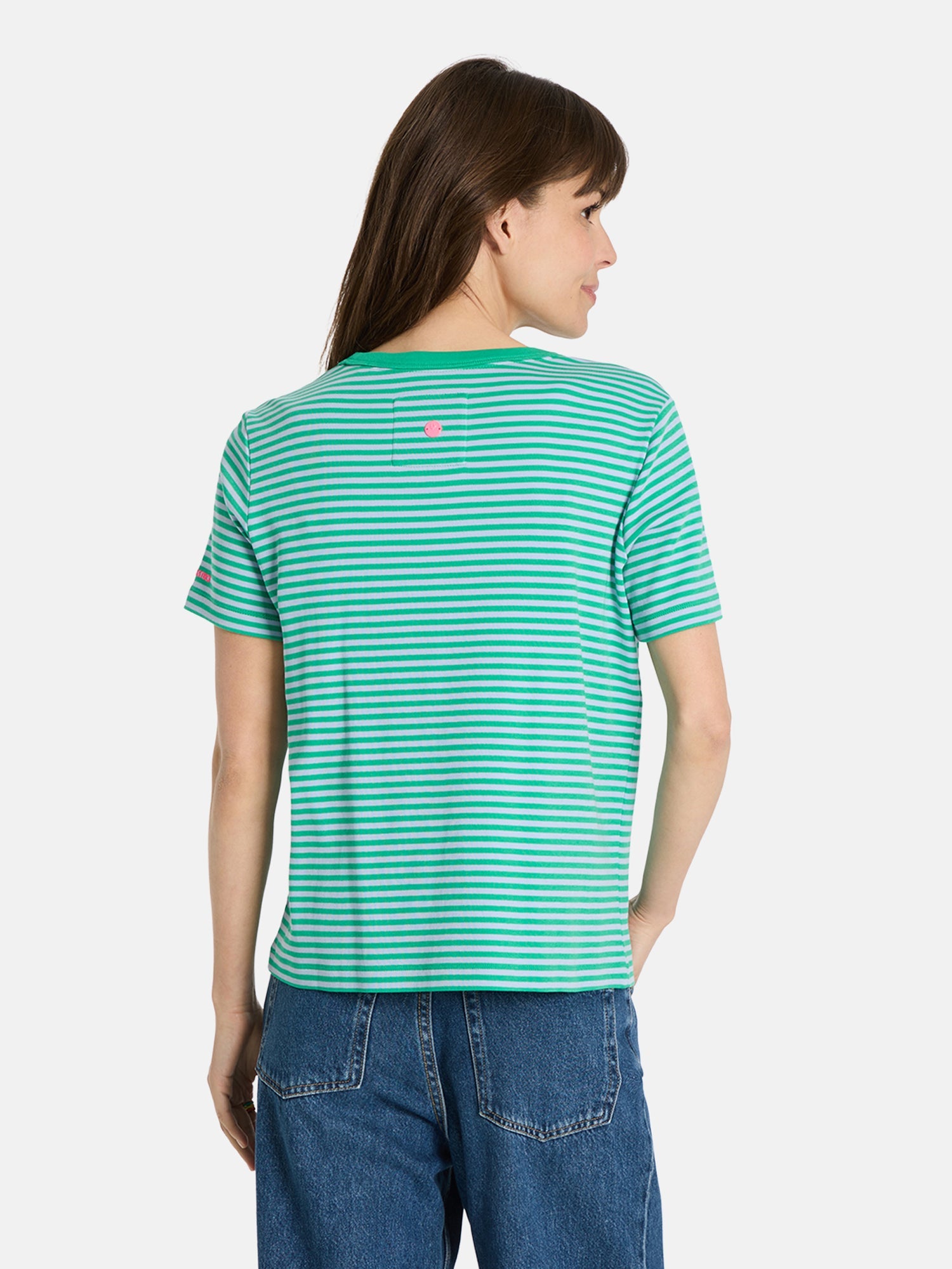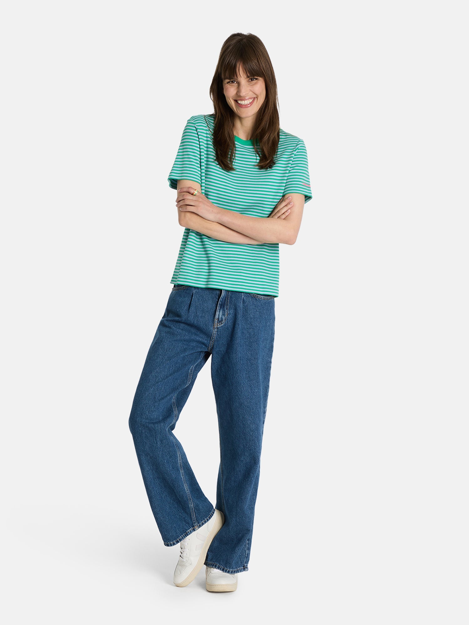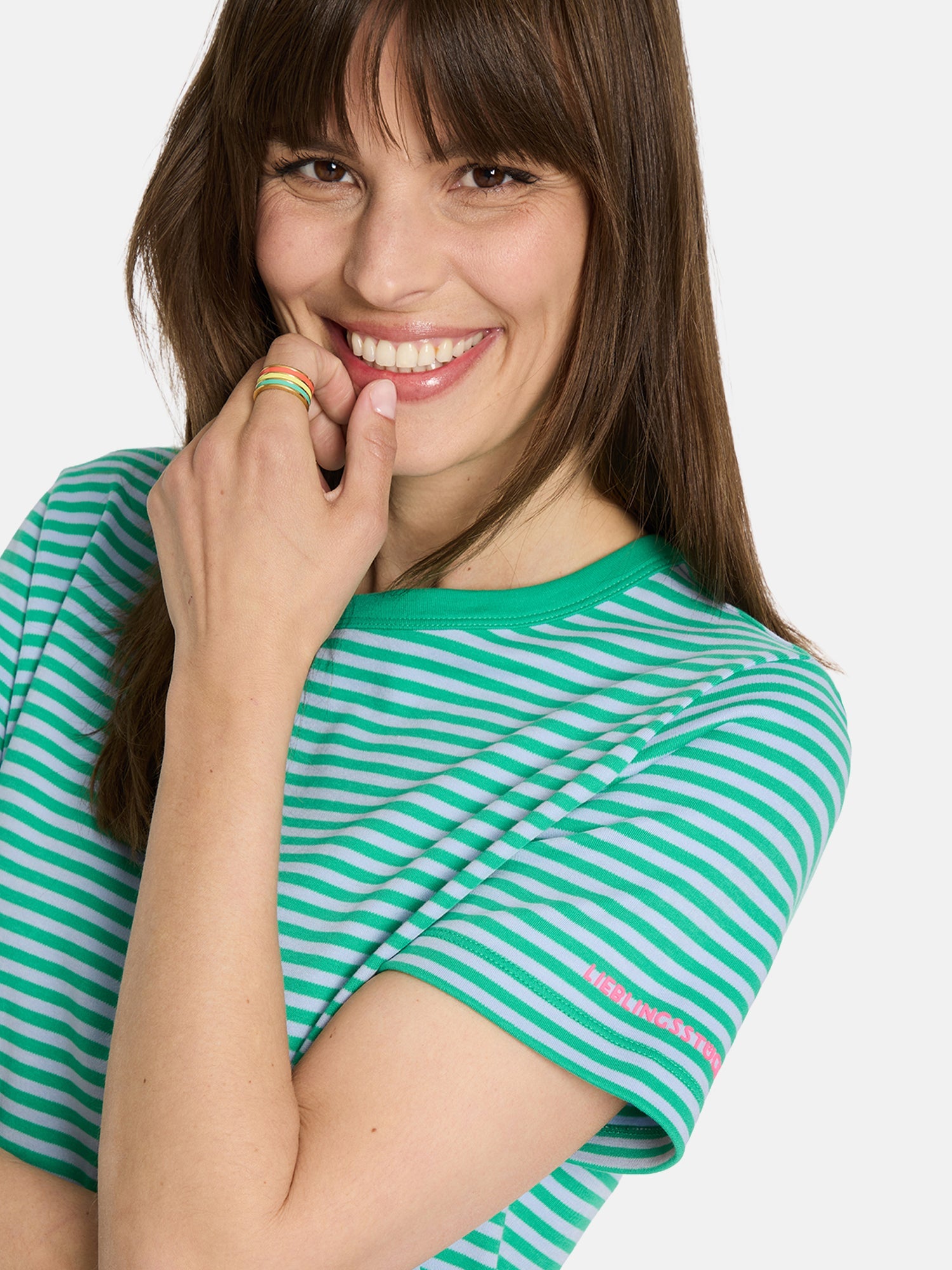 Frisch, modern und immer im Trend! Dieses T-Shirt mit zweifarbigen Ringeln bringt eine verspielte Dynamik in Deinen Look und sorgt für einen lässig-stylischen Auftritt. Dank des bequemen Schnitts und des weichen Materials ist es nicht nur ein Hingucker, sondern auch ein echtes Wohlfühlteil – perfekt für Deine Alltagslooks!
