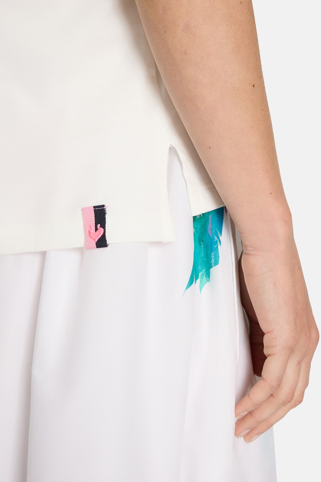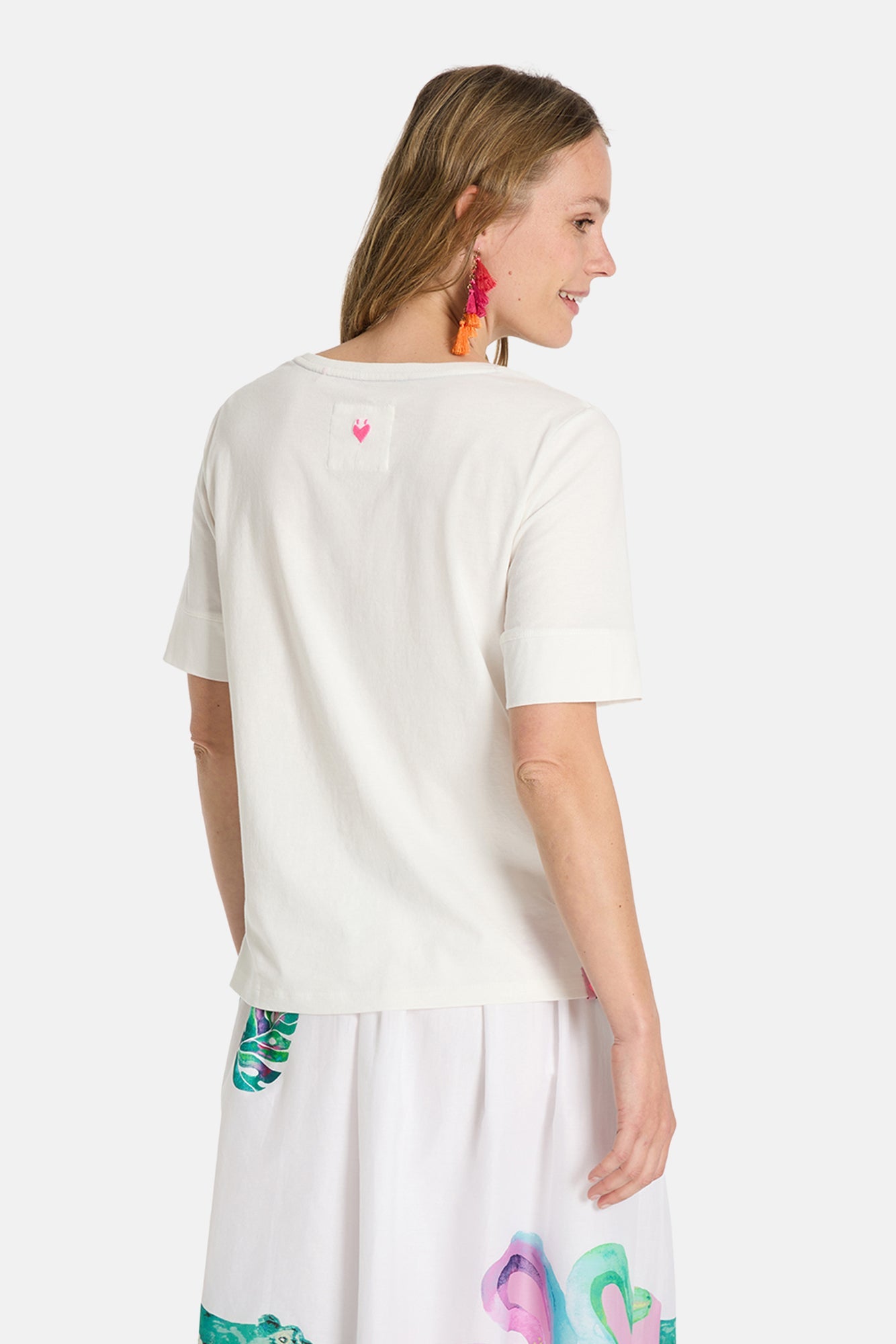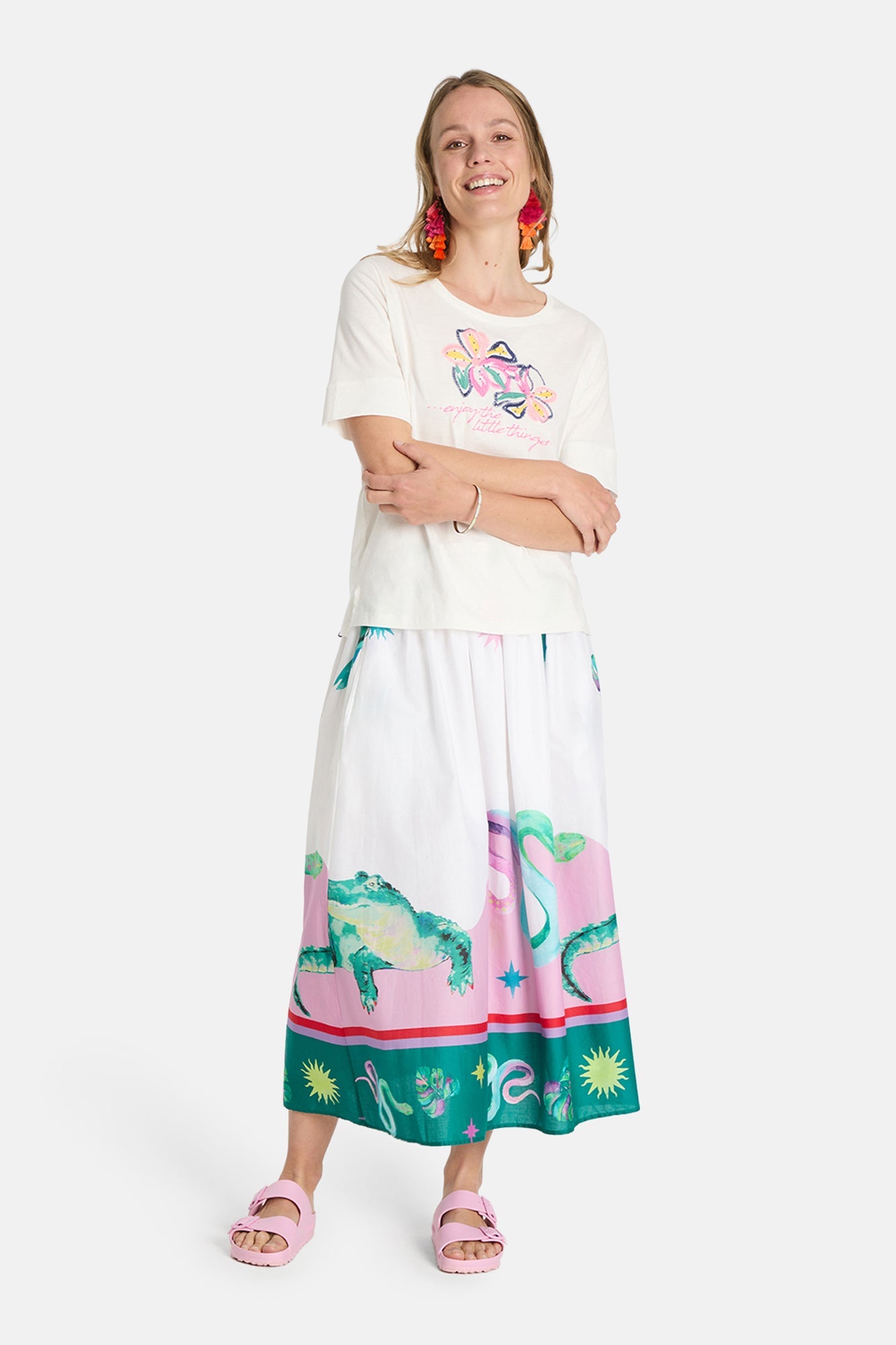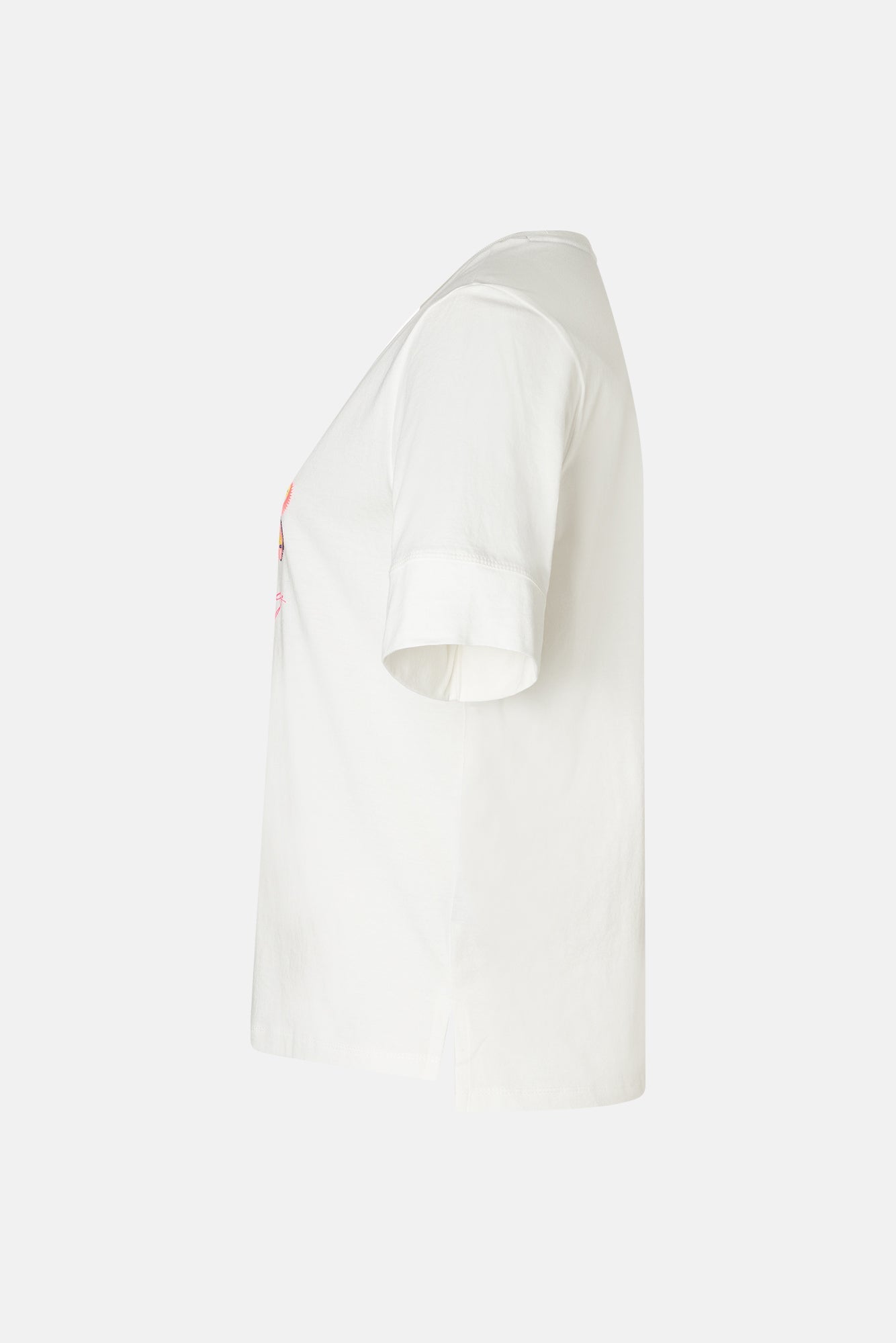 Dieses T-Shirt mit Rundhalsausschnitt und zauberhaftem Blumen-Frontmotiv ist ein echtes Wohlfühl-Highlight. Das verspielte Design bringt Leichtigkeit in Deinen Look, während der weiche Stoff Dir maximalen Komfort schenkt. Perfekt für den Alltag und mit toller Botschaft "enjoy the little things".