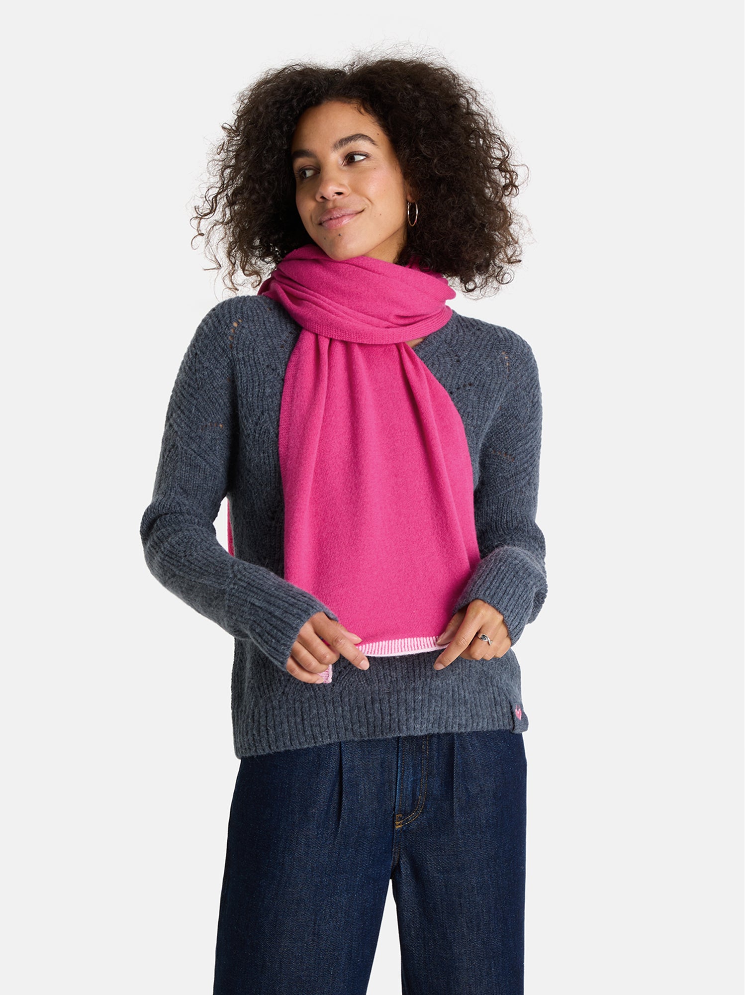 Dieser Strickschal ist ein echter Allrounder für kalte Tage. Er hält Dich wunderbar warm und fühlt sich angenehm weich an. Der dezente Kontrastabschluss und das kleine Herz-Detail machen ihn zu einem besonderen Accessoire, das sich vielseitig kombinieren lässt.